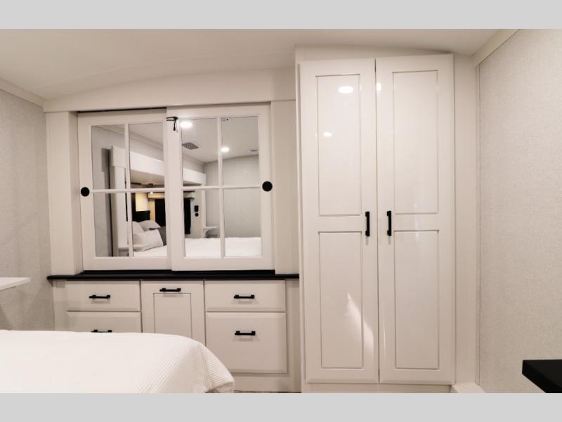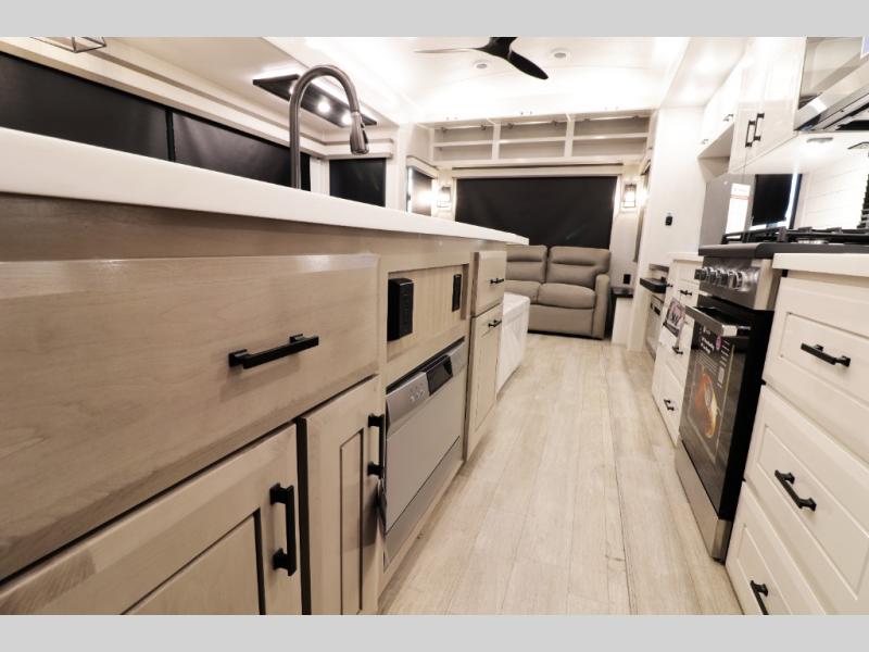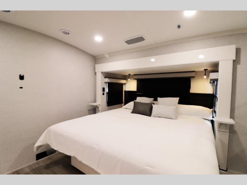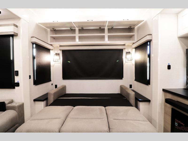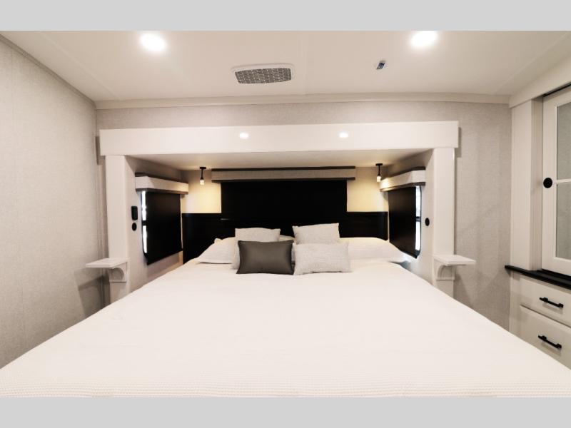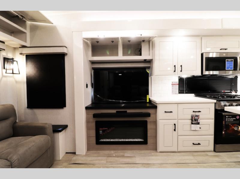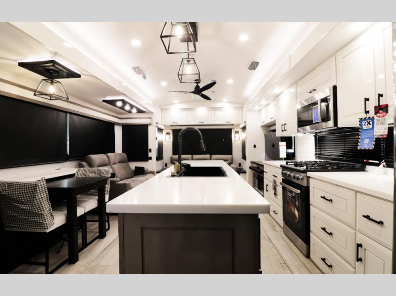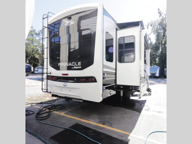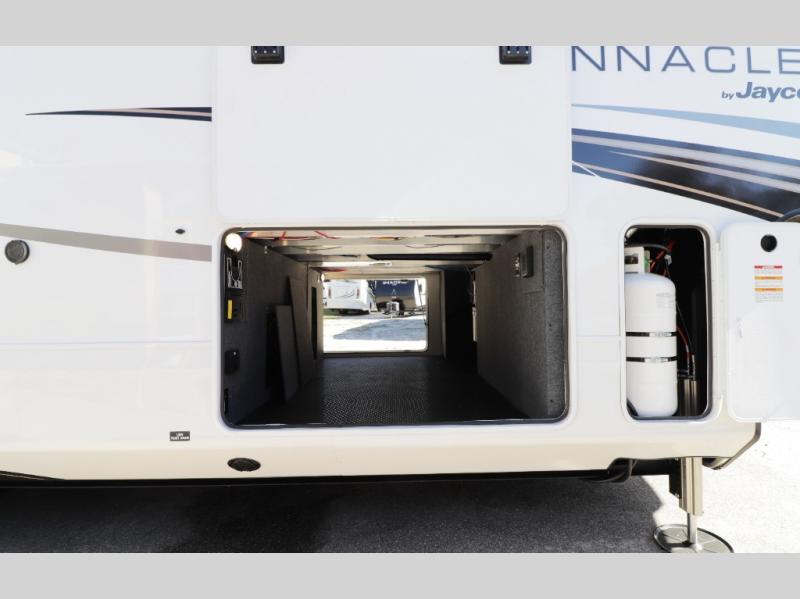 Built on a 102-inch wide-body foundation with a 3,000-lb. rear tow hitch and massive pass-through storage with slam-latch baggage doors, the Pinnacle redefines fifth-wheel luxury and functionality. Backed by Stronghold VBL™ laminated walls and JaySMART™ safety lighting, this coach is engineered for longevity and confidence on the road.