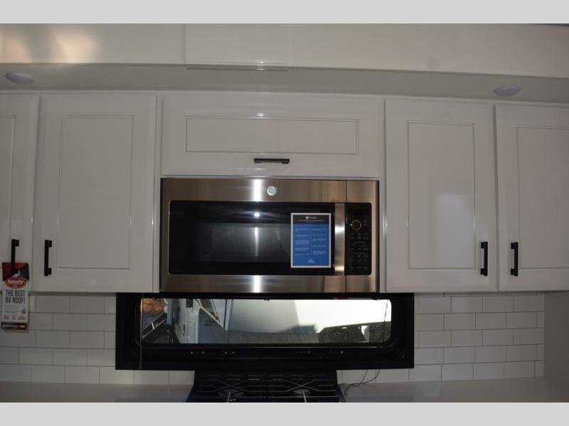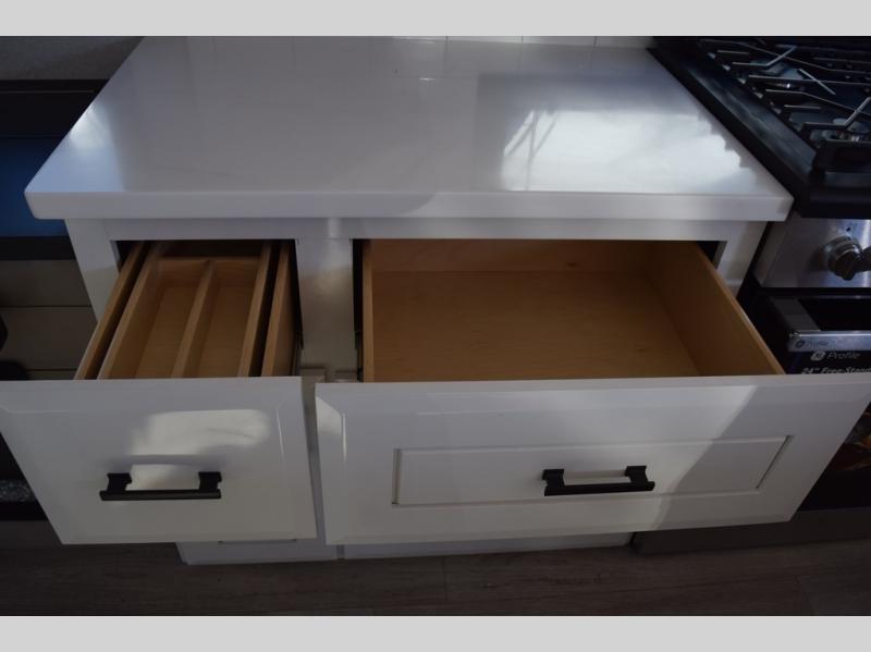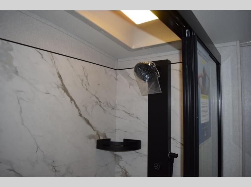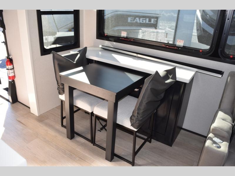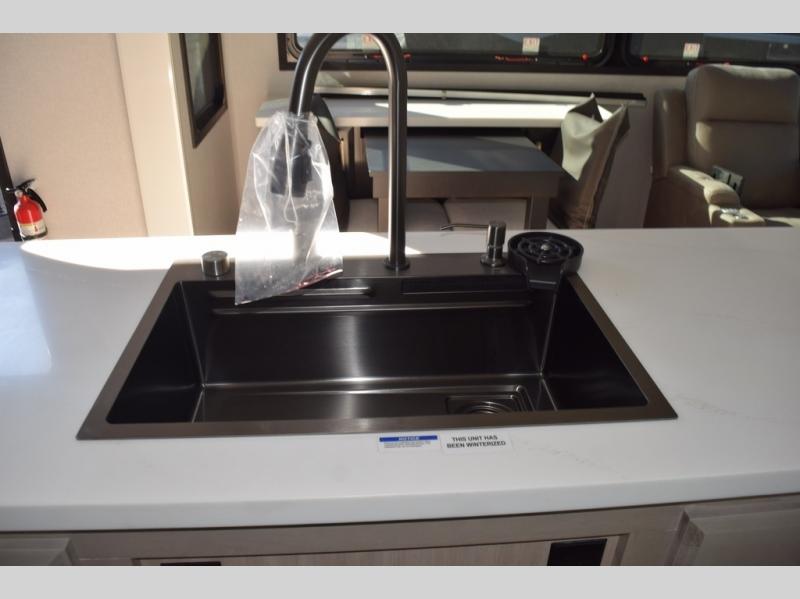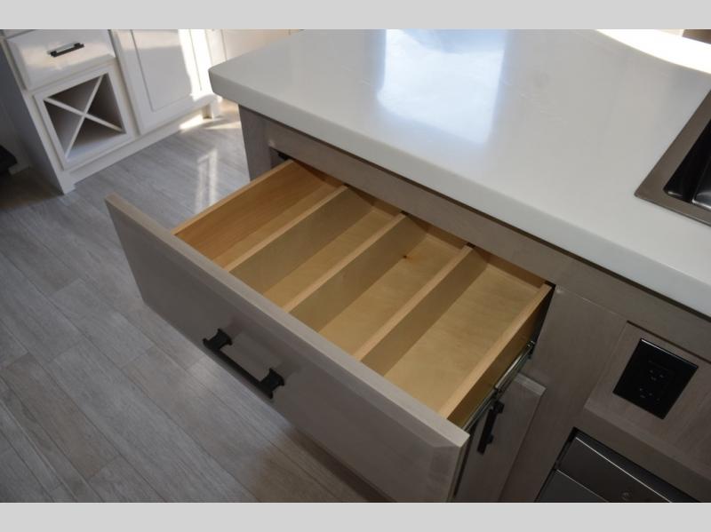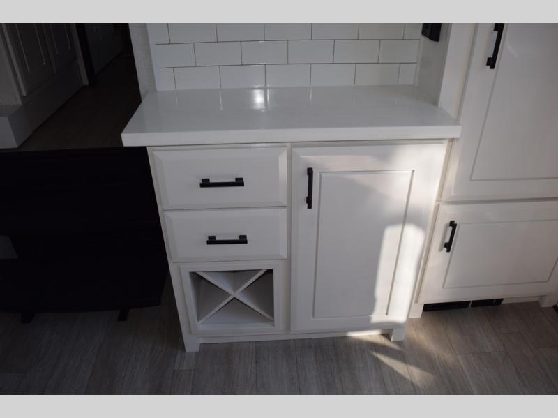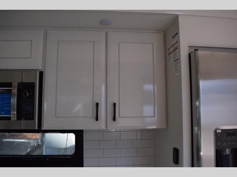 Each Pinnacle fifth wheel features Stronghold VBL lamination for the lightest, yet strongest construction in the RV industry. Add that to the Magnum Truss XL6 roof system and Climate Shield zero-degree tested weather protection and you'll be enjoying your fifth wheel for years to come. Some of the exterior conveniences you will appreciate are the Keyed-Alike lock system, the fully enclosed, universal docking center, and the 6-point hydraulic auto-leveling system for quick and easy set up. The 5 Star Handling Package will make towing a fifth wheel a walk in the park, and the two Whisper Quiet A/C units will keep you comfortable during the hot summer months. Inside, you'll enjoy the residential "Do it all" sink with pull-out kitchen faucet, glass rinse, and vegetable rinse, the handcrafted hardwood glazed cabinetry, the vinyl flooring throughout, plus many more comforts. There is even a central vacuum system, a wireless remote control system, USB ports throughout, plus many more conveniences to make each trip enjoyable.