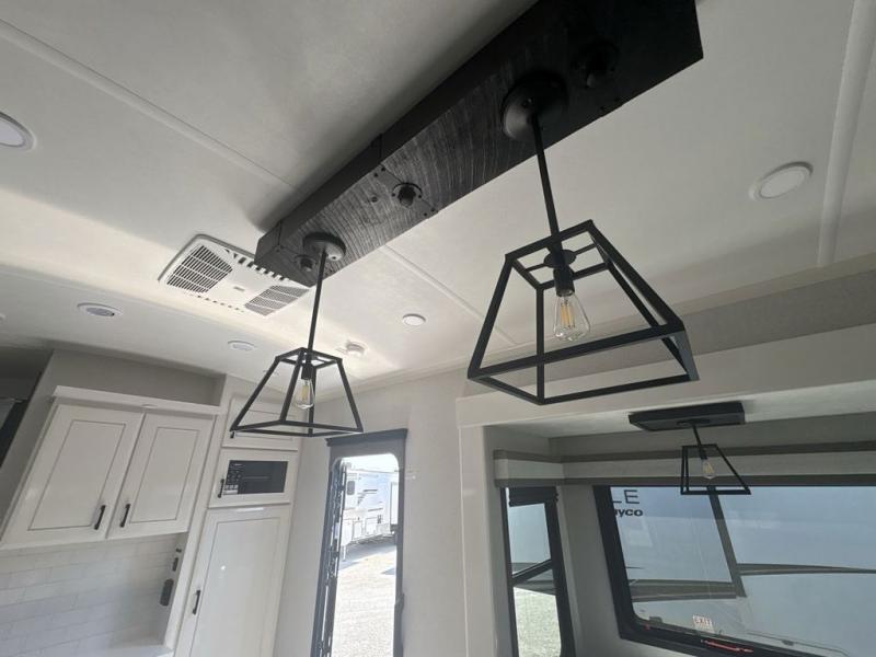 Each Pinnacle fifth wheel features Stronghold VBL lamination for the lightest, yet strongest construction in the RV industry. Add that to the Magnum Truss XL6 roof system and Climate Shield zero-degree tested weather protection and you'll be enjoying your fifth wheel for years to come. Some of the exterior conveniences you will appreciate are the Keyed-Alike lock system, the fully enclosed, universal docking center, and the 6-point hydraulic auto-leveling system for quick and easy set up. The 5 Star Handling Package will make towing a fifth wheel a walk in the park, and the two Whisper Quiet A/C units will keep you comfortable during the hot summer months. Inside, you'll enjoy the residential "Do it all" sink with pull-out kitchen faucet, glass rinse, and vegetable rinse, the handcrafted hardwood glazed cabinetry, the vinyl flooring throughout, plus many more comforts. There is even a central vacuum system, a wireless remote control system, USB ports throughout, plus many more conveniences to make each trip enjoyable.