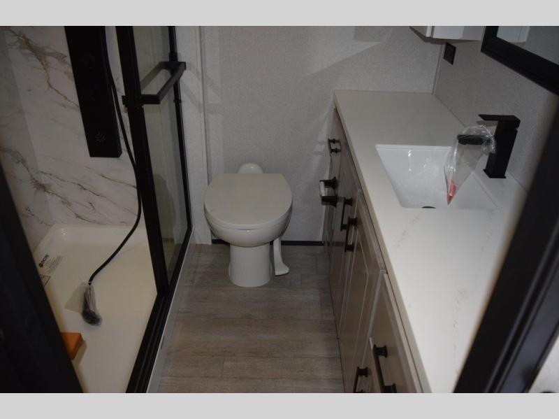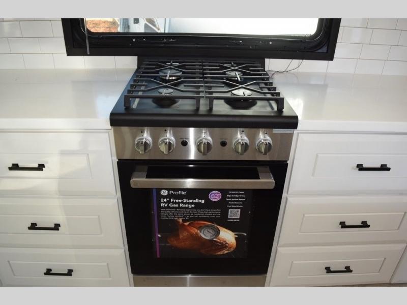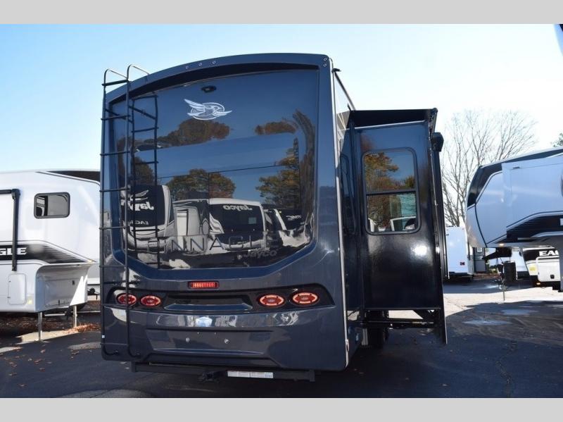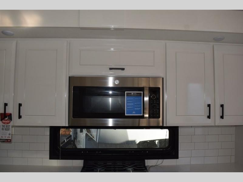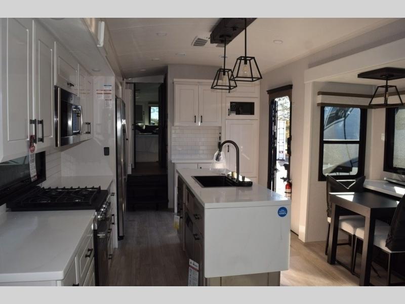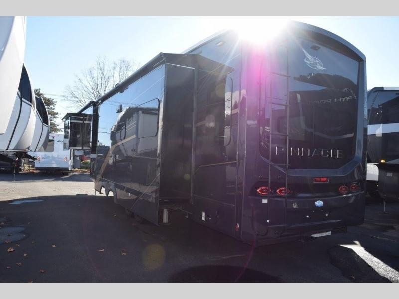 Each Pinnacle fifth wheel features Stronghold VBL lamination for the lightest, yet strongest construction in the RV industry. Add that to the Magnum Truss XL6 roof system and Climate Shield zero-degree tested weather protection and you'll be enjoying your fifth wheel for years to come. Some of the exterior conveniences you will appreciate are the Keyed-Alike lock system, the fully enclosed, universal docking center, and the 6-point hydraulic auto-leveling system for quick and easy set up. The 5 Star Handling Package will make towing a fifth wheel a walk in the park, and the two Whisper Quiet A/C units will keep you comfortable during the hot summer months. Inside, you'll enjoy the residential "Do it all" sink with pull-out kitchen faucet, glass rinse, and vegetable rinse, the handcrafted hardwood glazed cabinetry, the vinyl flooring throughout, plus many more comforts. There is even a central vacuum system, a wireless remote control system, USB ports throughout, plus many more conveniences to make each trip enjoyable.