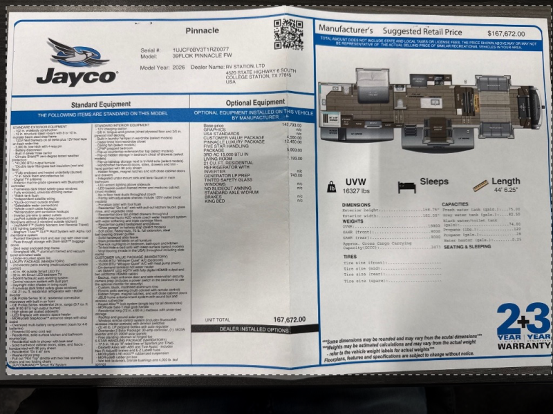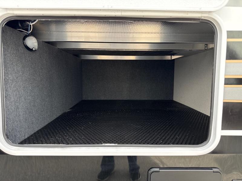 Each Pinnacle fifth wheel features Stronghold VBL lamination for the lightest, yet strongest construction in the RV industry. Add that to the Magnum Truss XL6 roof system and Climate Shield zero-degree tested weather protection and you'll be enjoying your fifth wheel even in harsh weather. Some of the exterior conveniences you will appreciate are the Keyed-Alike lock system, the fully enclosed, universal docking center, and the 6-point hydraulic auto-leveling system for quick and easy set up. The 5 Star Handling Package will make towing a fifth wheel a walk in the park, and the two Whisper Quiet A/C units will keep you comfortable during the hot summer months. Inside, you'll enjoy the residential "Do it all" sink, the solid hardwood cabinet doors, stiles, and fascia, the vinyl flooring throughout, plus many more comforts. There is even a central vacuum system, a wireless remote-control system, 12V charging station, plus many more conveniences to make each trip enjoyable.