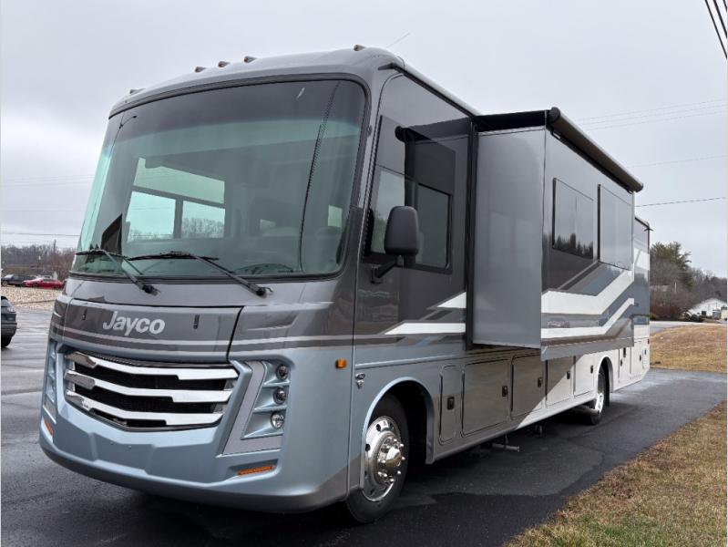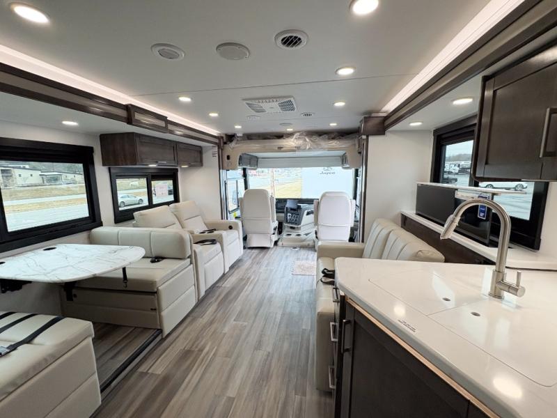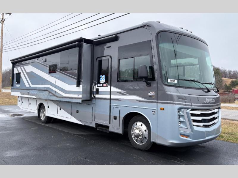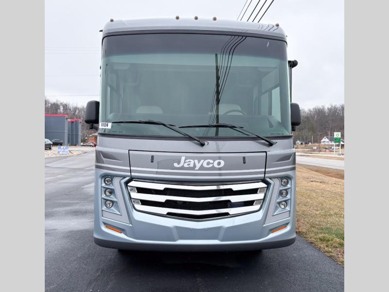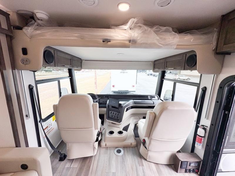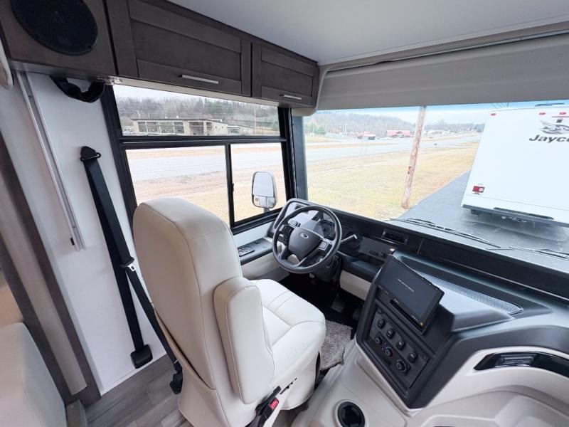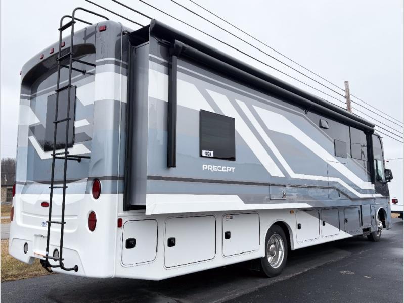 The Jayco Precept Class A gas motorhome comes with some features that you'll only find on a Jayco product, like the JRide Plus which offers you a powerful blend of precise handling and renowned stability on the road and the Firefly total coach control system which allows you to control your coach's operations from just about anywhere with your phone. You'll find two-point lap seatbelts in all designated seating locations, and the one-piece, seamless fiberglass front and rear caps resist wear and tear over the years. The Precept also offers you the lightest yet strongest construction in the industry with the Stronghold VBL lamination on the roof, floor, and sidewalls. You'll also be very pleased to find a 120" panoramic windshield, automatic hydraulic leveling jacks, and a 5,500W generator with auto-gen start.