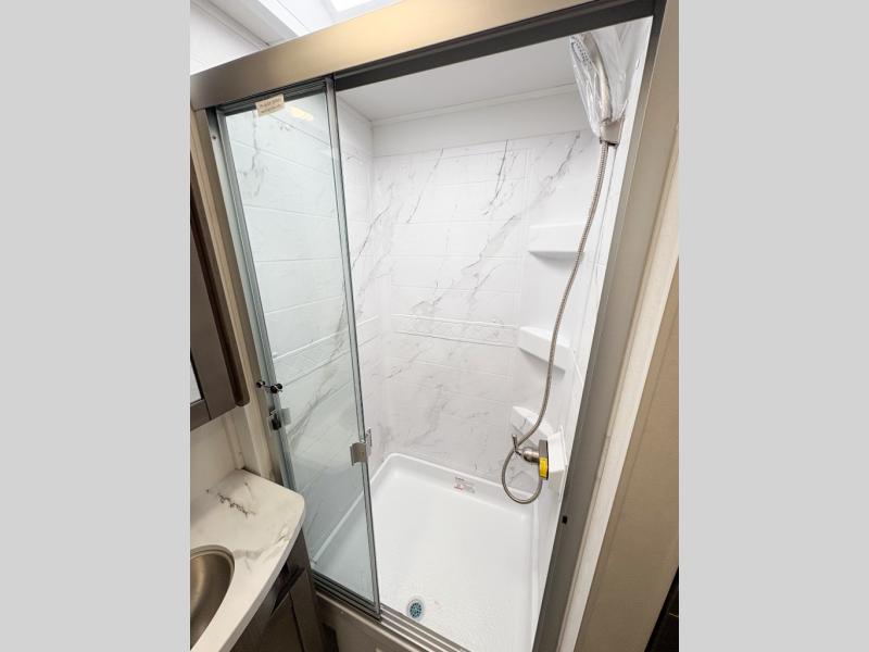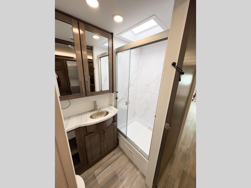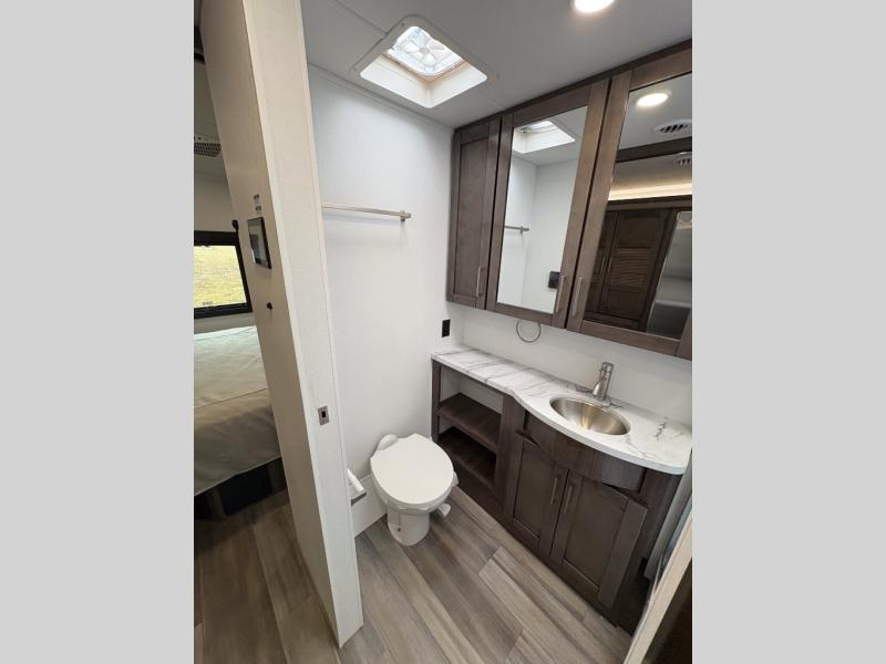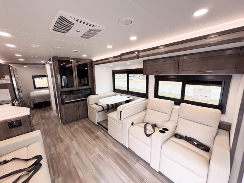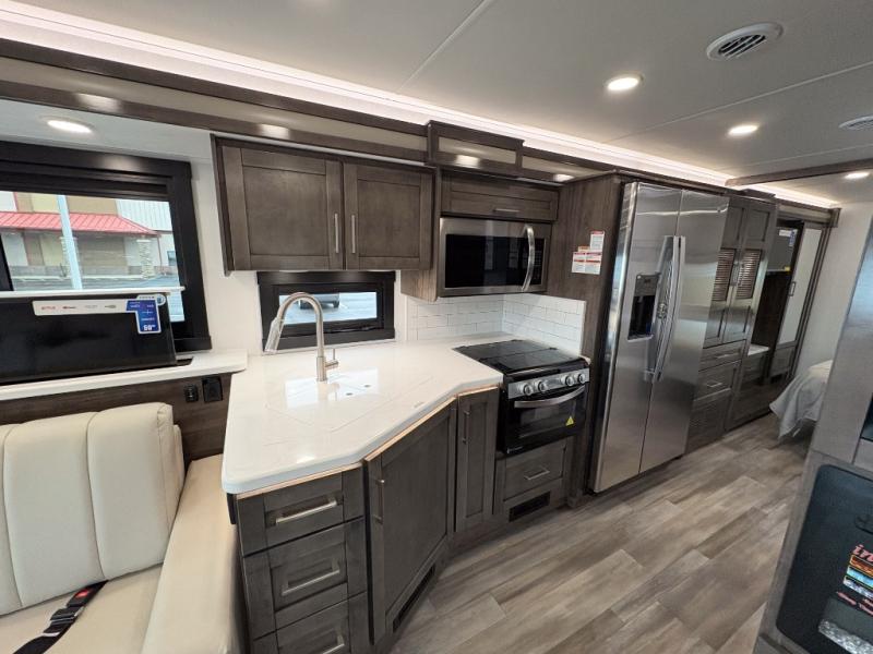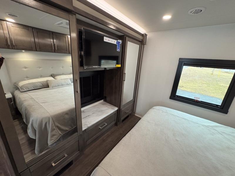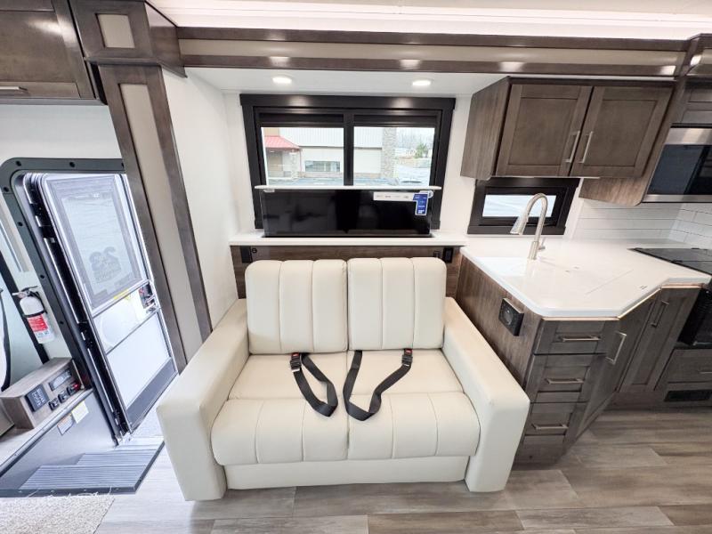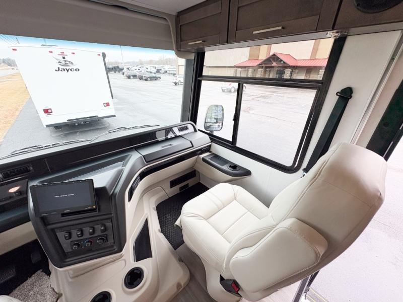 The Jayco Precept Class A gas motorhome comes with some features that you'll only find on a Jayco product, like the JRide Plus which offers you a powerful blend of precise handling and renowned stability on the road and the Firefly total coach control system which allows you to control your coach's operations from just about anywhere with your phone. You'll find two-point lap seatbelts in all designated seating locations, and the one-piece, seamless fiberglass front and rear caps resist wear and tear over the years. The Precept also offers you the lightest yet strongest construction in the industry with the Stronghold VBL lamination on the roof, floor, and sidewalls. You'll also be very pleased to find a 120" panoramic windshield, automatic hydraulic leveling jacks, and a 5,500W generator with auto-gen start.