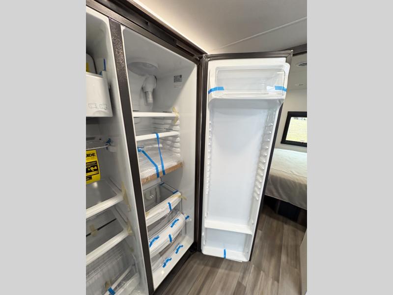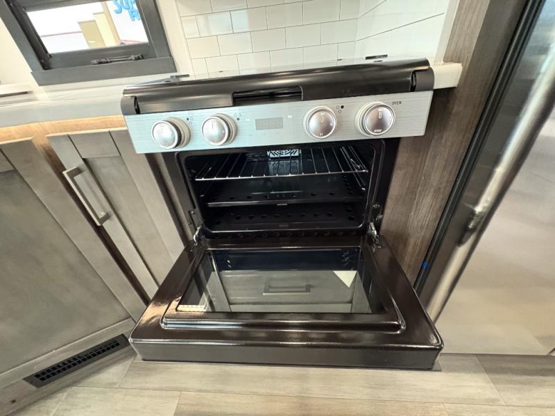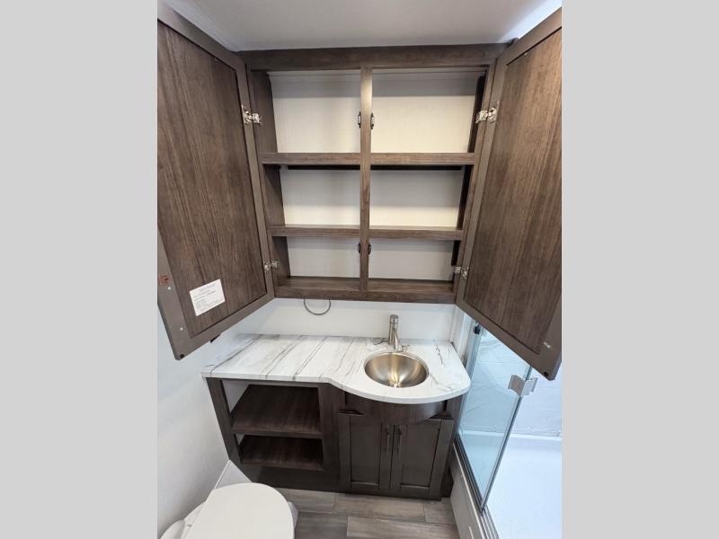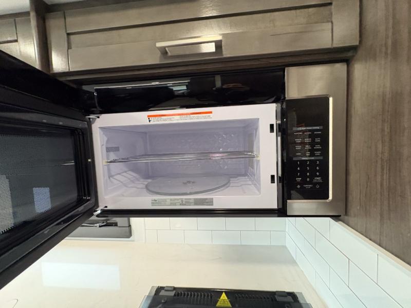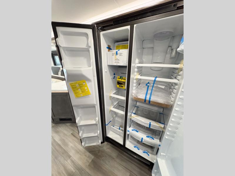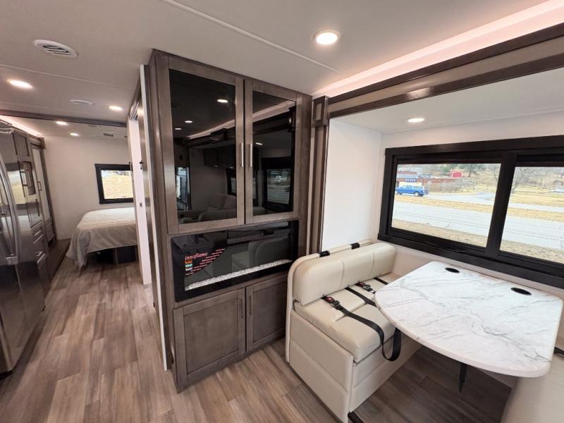With its full-wall slide and additional slide in the living area, this Precept Class A gas motorhome is full of space! You'll have room to do the things you love, like cooking breakfast on the Furrion all-in-one cooktop and oven, relaxing on the theater sofa, cleaning up in the full bathroom, and playing card games at the booth dinette. You also won't be at a loss for entertainment because this coach offers you three TVs, and you'll even have an extra spot to relax once you turn the swivel cab seats around. In between the cab seats is a removable cockpit table that will allow you to set your glass of wine or cup of coffee down to talk, and you can add some more sleeping space to this coach by choosing the optional drop-down overhead bunk above the cab.