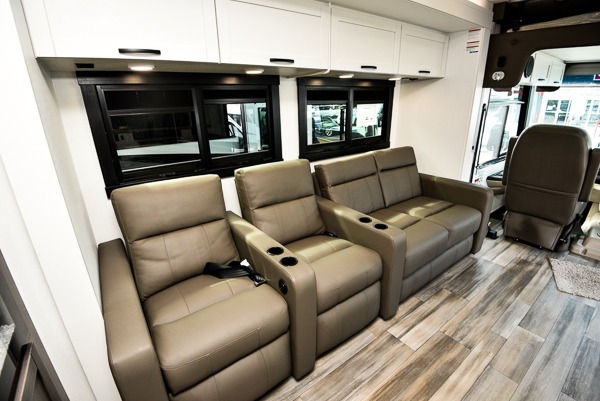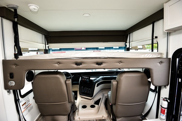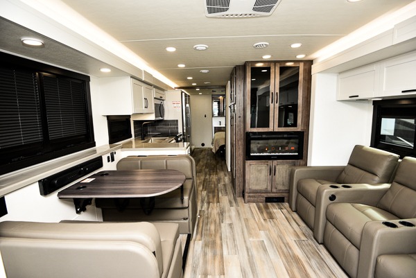 Grab your luggage, your beach towel, your hiking boots, and your favorite people and head out to a new scenic destination in this Precept Class A gas motorhome! The first thing you'll notice about this coach is how spacious it is. With a full-wall slide, a bedroom slide, and a living room slide, you'll be able to live freely. The other thing that will catch your eye is the full bathroom in the back and the half bathroom in the middle. You'll easily be able to rest on the hide-a-bed sofa, theater sofa, and booth dinette after a tiresome day, and if you want to just go straight to bed, you can lie down on the king-size bed. You can also provide your group with some extra sleeping space by adding the optional drop-down overhead bunk above the cab.