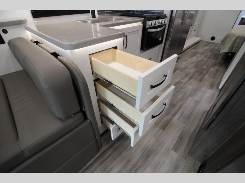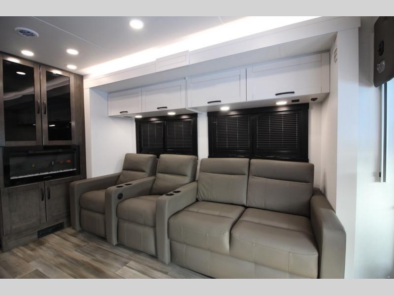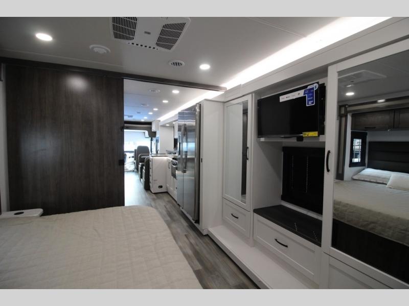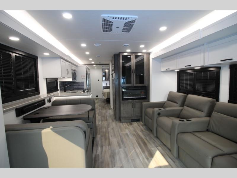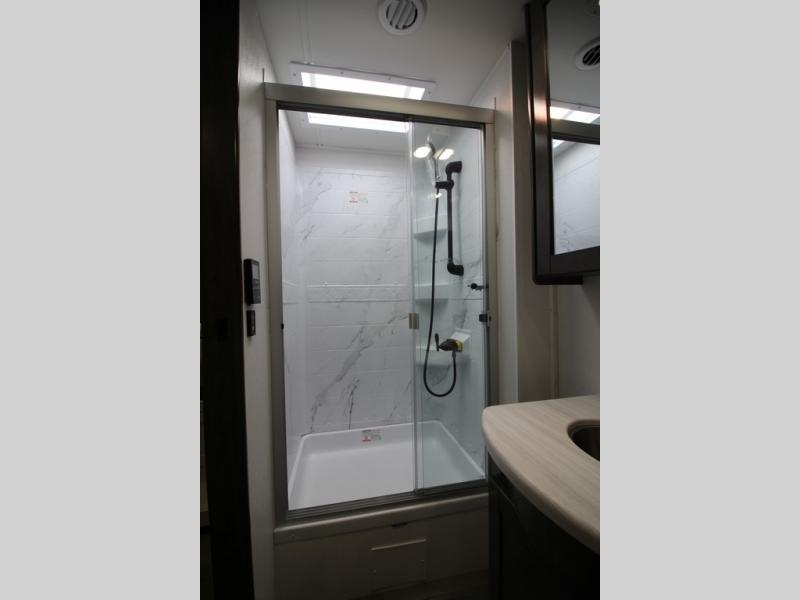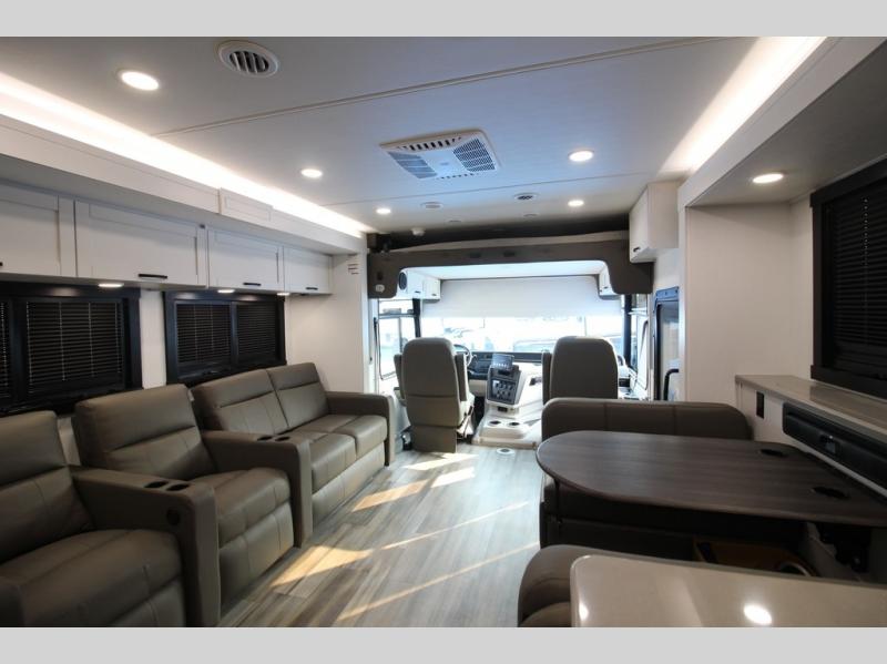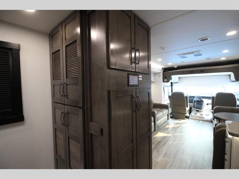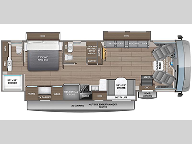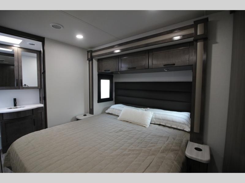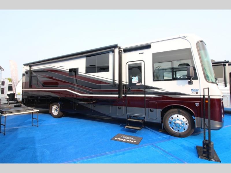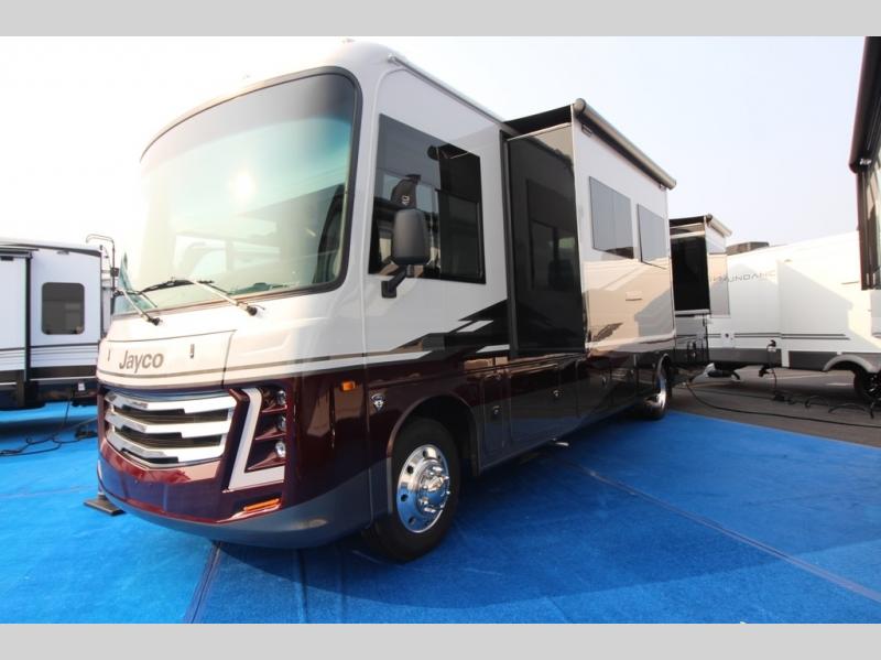 The Jayco Precept Class A gas motorhome comes with some features that you'll only find on a Jayco product, like the JRide Plus which offers you a powerful blend of precise handling and renowned stability on the road and the Firefly total coach control system which allows you to control your coach's operations from just about anywhere with your phone. You'll find two-point lap seatbelts in all designated seating locations, and the one-piece, seamless fiberglass front and rear caps resist wear and tear over the years. The Precept also offers you the lightest yet strongest construction in the industry with the Stronghold VBL lamination on the roof, floor, and sidewalls. You'll also be very pleased to find a 120" panoramic windshield, automatic hydraulic leveling jacks, and a 5,500W generator with auto-gen start.