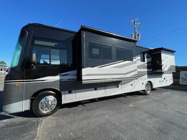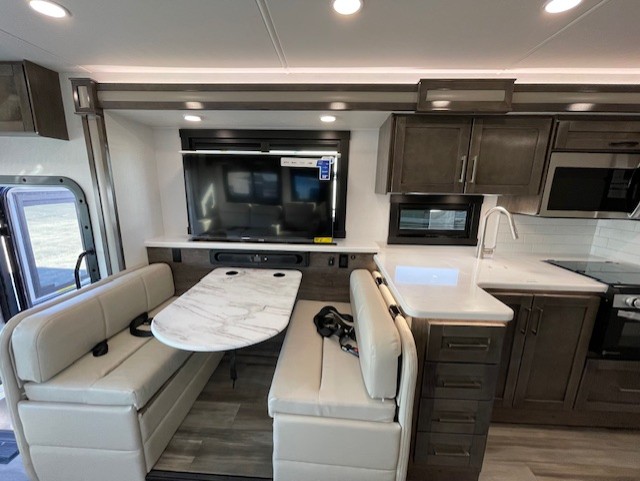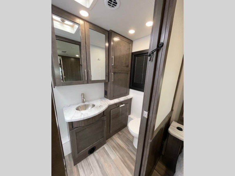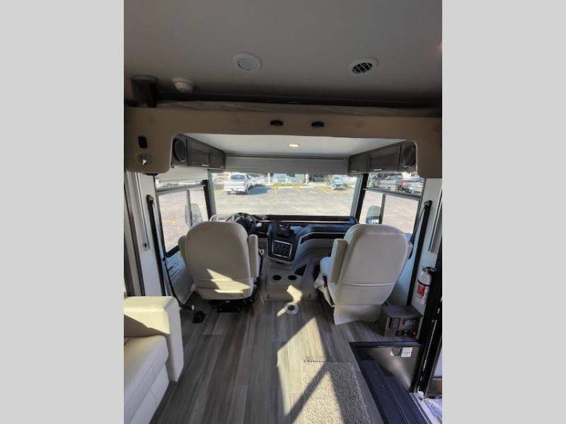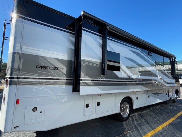 The Jayco Precept Class A gas motorhome comes with some features that you'll only find on a Jayco product, like the JRide Plus which offers you a powerful blend of precise handling and renowned stability on the road and the Firefly total coach control system which allows you to control your coach's operations from just about anywhere with your phone. You'll find two-point lap seatbelts in all designated seating locations, and the one-piece, seamless fiberglass front and rear caps resist wear and tear over the years. The Precept also offers you the lightest yet strongest construction in the industry with the Stronghold VBL lamination on the roof, floor, and sidewalls. You'll also be very pleased to find a 120" panoramic windshield, automatic hydraulic leveling jacks, and a 5,500W generator with auto-gen start.