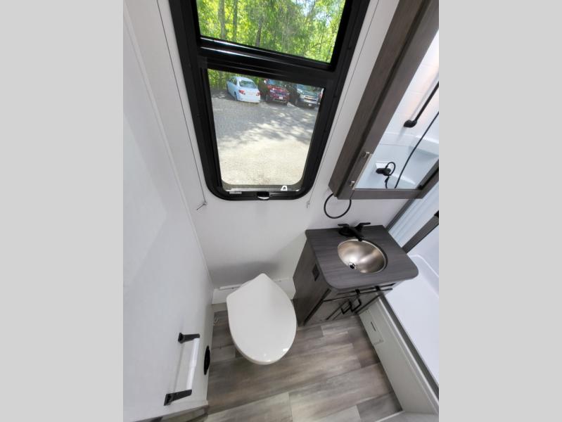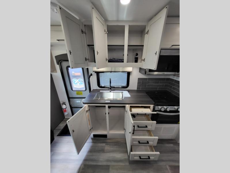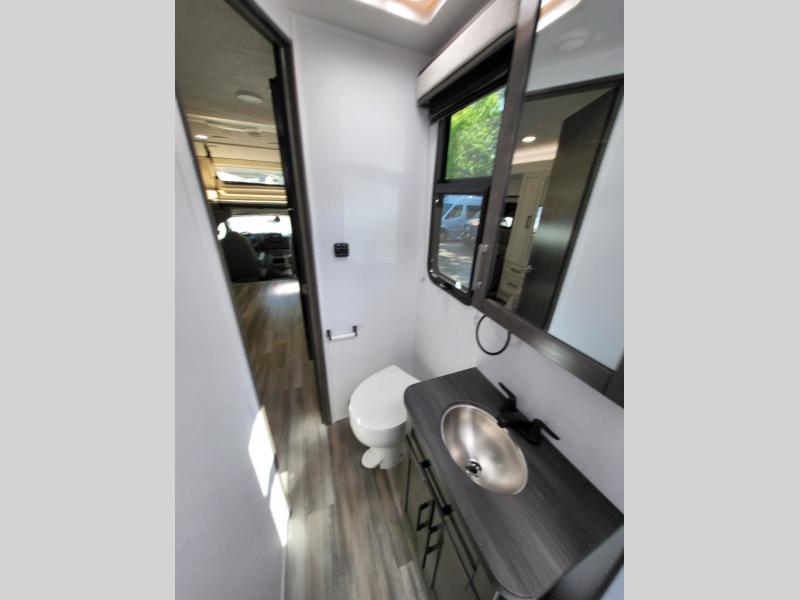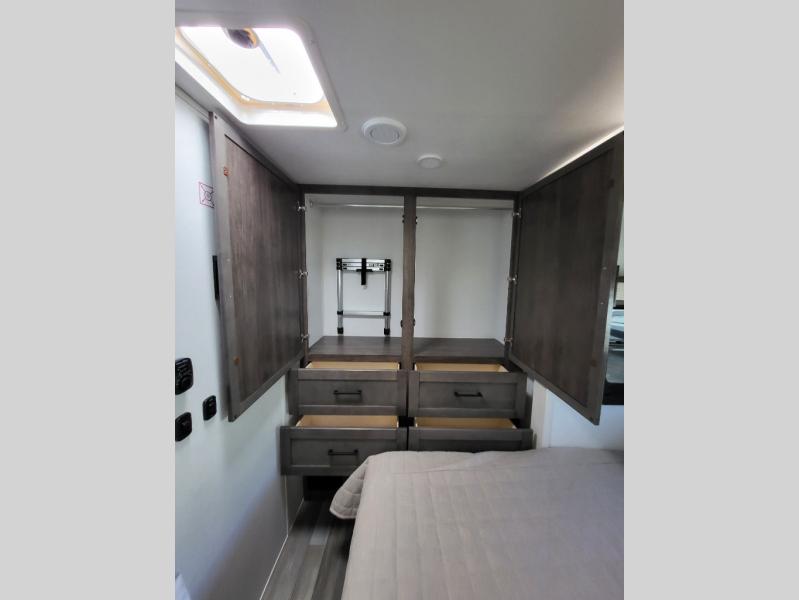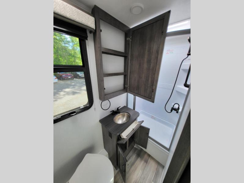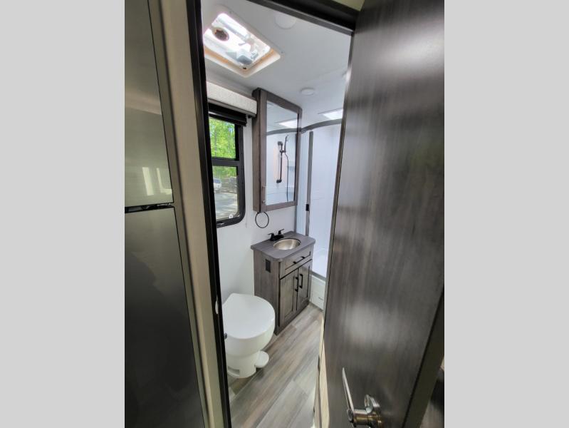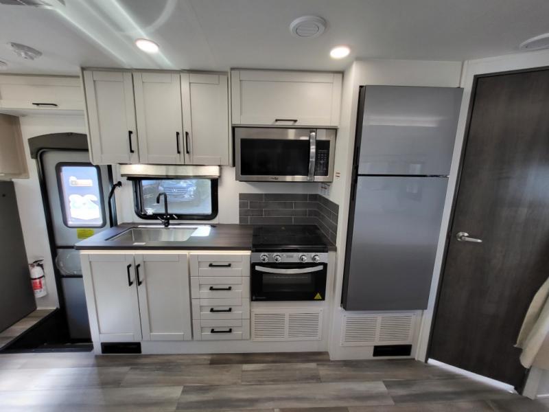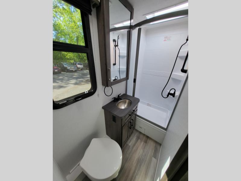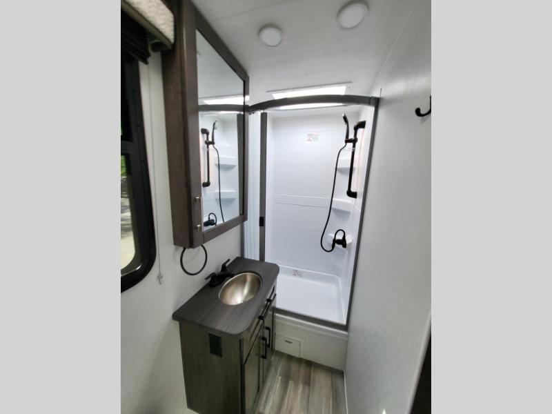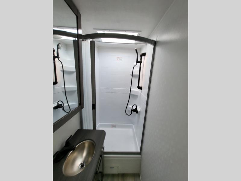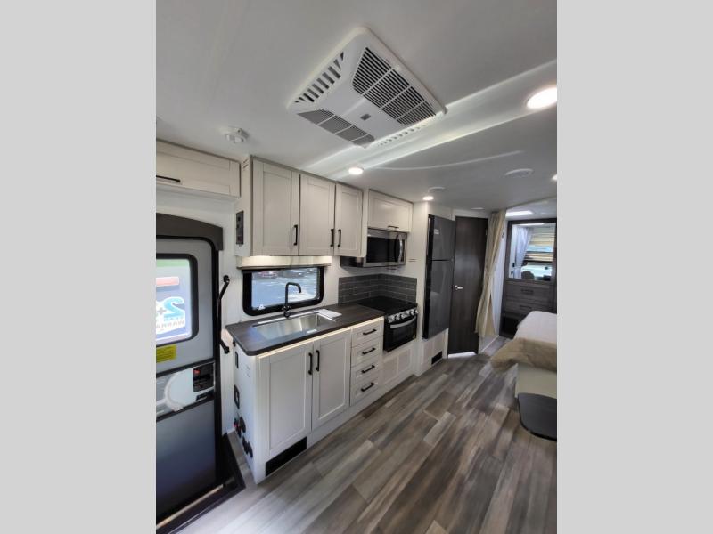 Inside, the Redhawk 24B shines with residential touches—solid-surface countertops, spacious cabinetry, LED lighting, and sleeping accommodations for up to six. From the cozy queen bed to the convertible dinette and over-cab bunk, comfort is at the heart of this RV. The fully enclosed bathroom with a separate shower adds the convenience of home while you’re on the move.