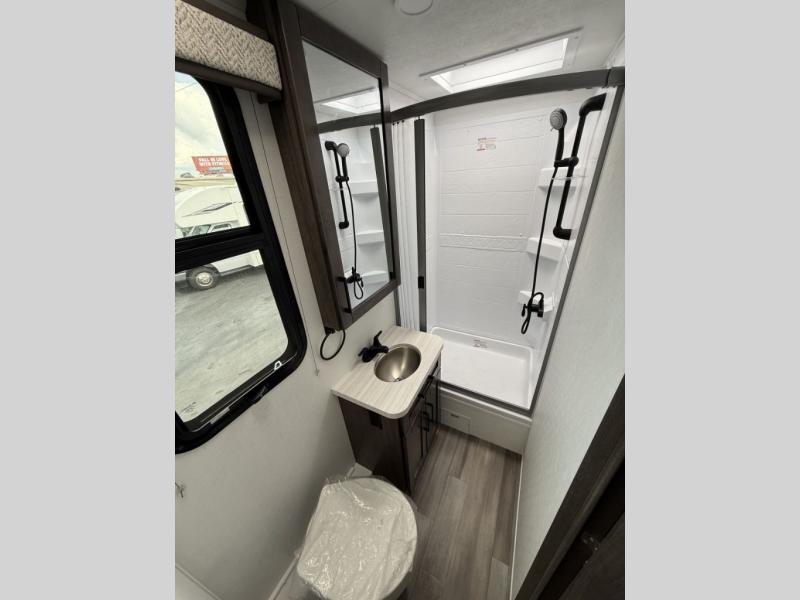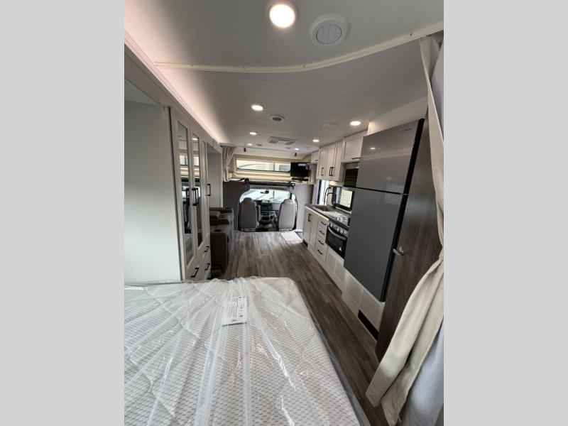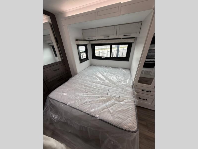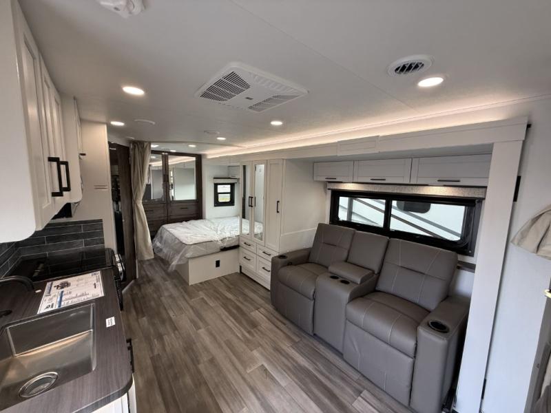 When you step up your Class C ownership with Jayco’s Redhawk, you're stepping into a new level of RV excellence. The differences between the Redhawk and Redhawk SE are clear from the start, beginning with the Redhawk’s sleek, frameless windows that give it a clean, automotive look while protecting seals from harmful sun exposure. That means a longer lifespan and fewer trips to the shop. Safety is also a priority, with side-view cameras offering full visibility down both sides of the coach while turning or changing lanes. The JRide® handling package adds to the smooth experience, with features like a computer-balanced driveshaft, front and rear stabilizer bars, Hellwig® helper springs, and rubber isolation body mounts. It all comes together for a ride that’s quiet, comfortable, and easy to enjoy—whether you're on a short getaway or a long haul. The one-piece seamless front cap is the only one of its kind on the market. This cap is designed to drastically reduce the risk of leaks in the most common location on a Class C motorhome. With Jayco’s extra attention to durability and detail, you’ll spend more time on the road and less time in the service bay. An automotive-bonded panoramic window in the cap adds to its appeal and provides stunning views from the overhead bunk. Staying cool is easy, too, with a standard 15,000 BTU ducted A/C or the option to upgrade to dual 13,500 BTU units with a power management system, so comfort is always part of the journey.