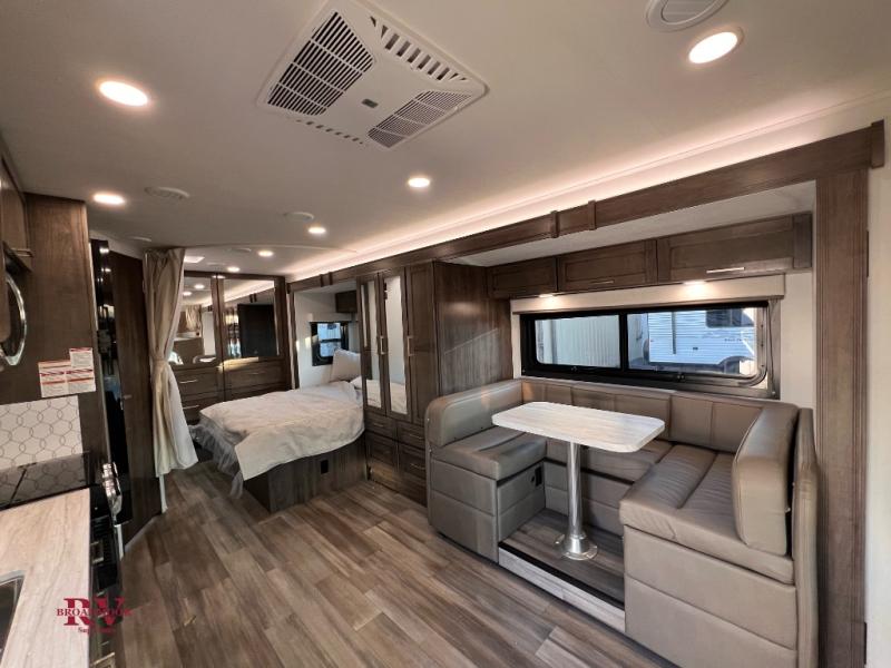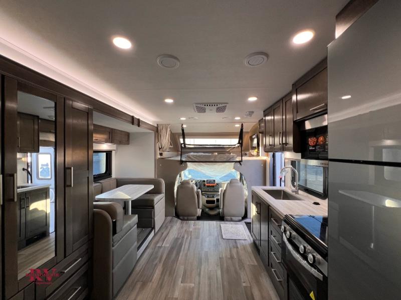Easily load up and head out for an adventure in this Redhawk with sleeping space for five, a full bathroom, and kitchen amenities to stay fed the whole trip. Once at your campsite, easily let out the slide and the 16' electric awning and plan your next activity. You an use the full bath, make a meal in the kitchen with the Furrion all-in-one cooktop and oven, plus the residential-size microwave, and grab your beverage from the 10 cu. ft. refrigerator. The driver and passenger seats swivel for more interior seating, and if you like, choose the theater seating option in place of the U-shaped dinette.