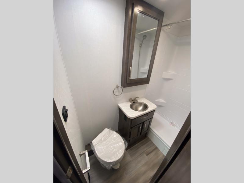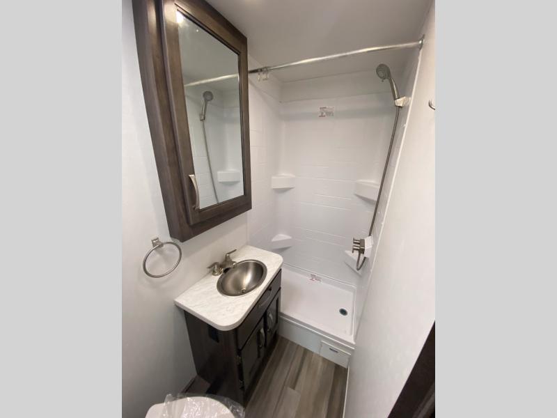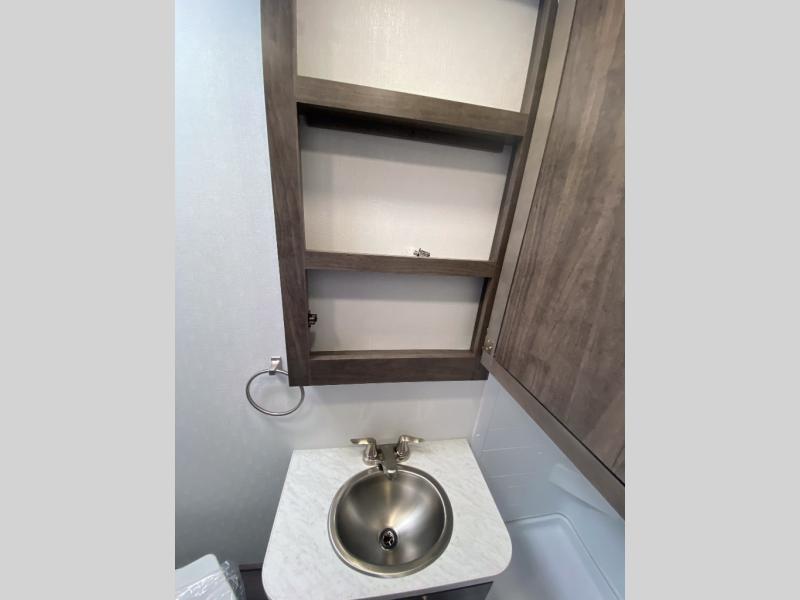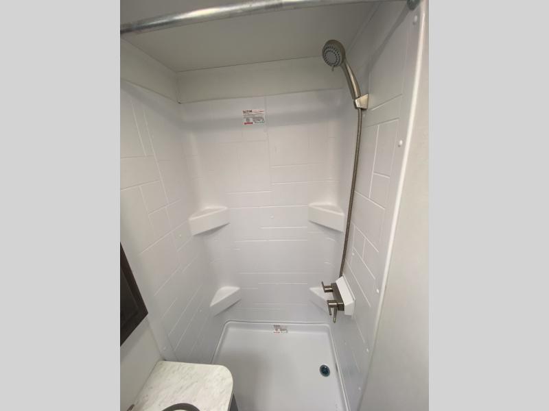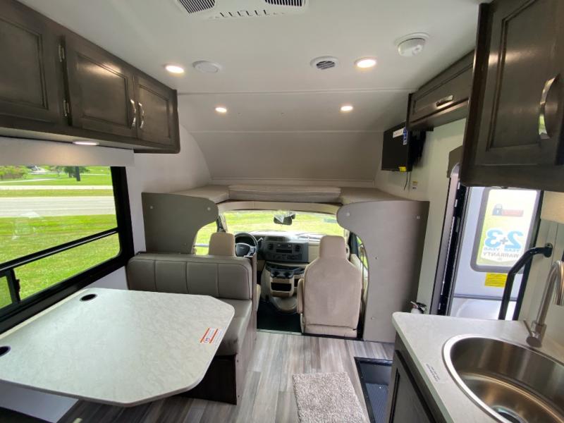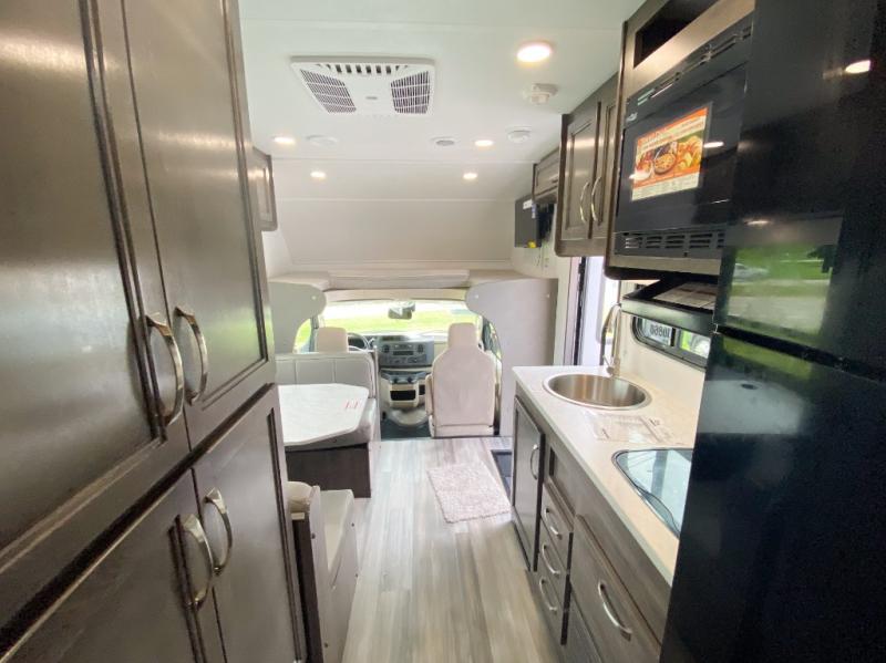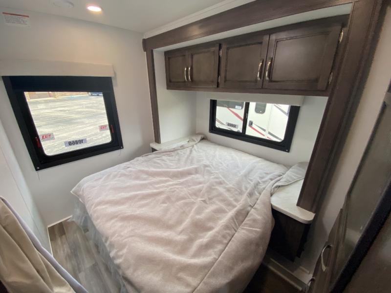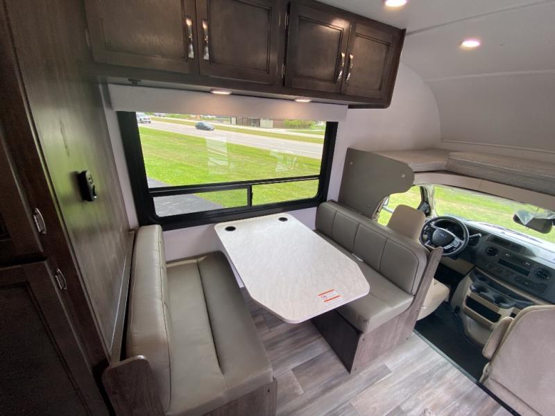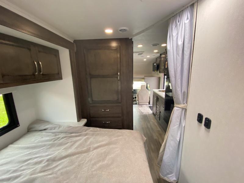 There's a comfortable place to sleep for everyone in this motorhome! From the corner 60" x 70" queen bed that slides out to the bunk over cab, and even the 42" x 70" booth dinette once converted. You can store your favorite snacks and hang up your clothes in the wardrobe/pantry. The chef can prepare delicious meals with the two burner cooktop and if there happens to be any leftovers then they can be stored in the 10 cu. ft. 12V refrigerator. The rear corner bathroom has a 24" x 36" shower that you are sure to enjoy after a long day of traveling!