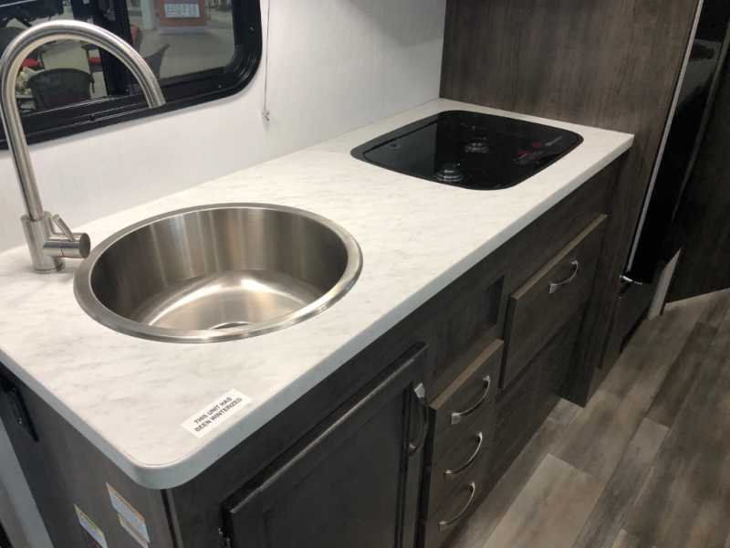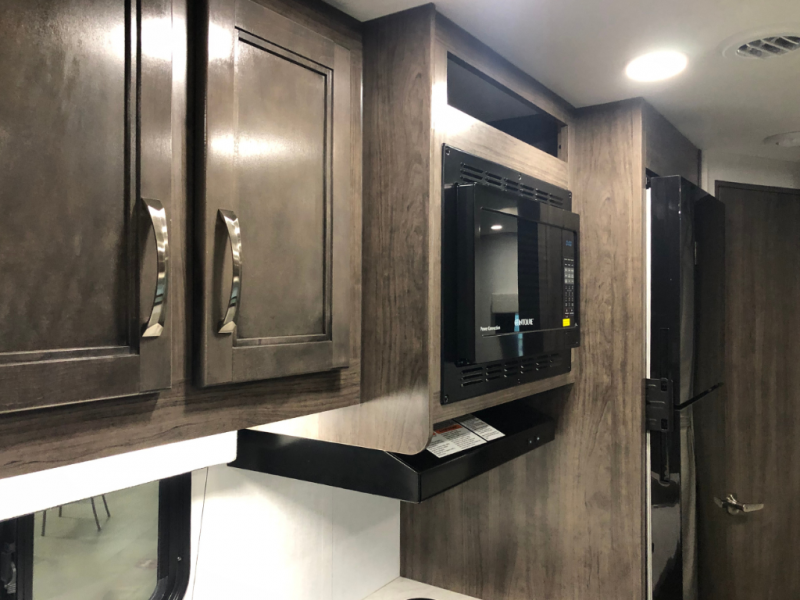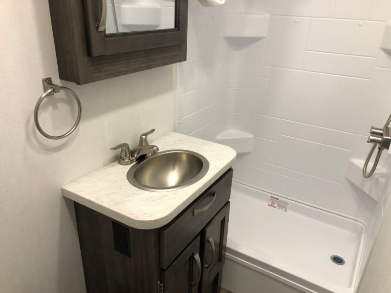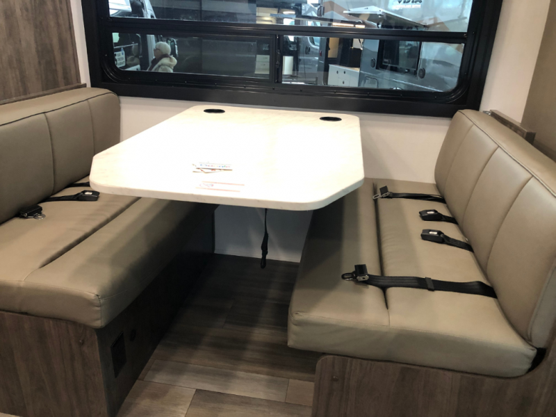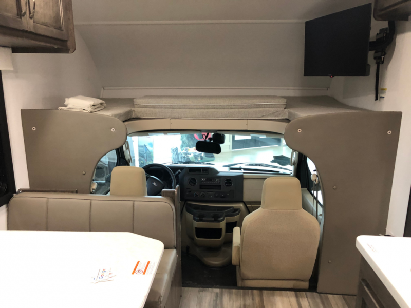 There's a comfortable place to sleep for everyone in this motorhome! From the corner 60" x 70" queen bed that slides out to the bunk over cab, and even the 42" x 70" booth dinette once converted. You can store your favorite snacks and hang up your clothes in the wardrobe/pantry. The chef can prepare delicious meals with the two burner cooktop and if there happens to be any leftovers then they can be stored in the 10 cu. ft. 12V refrigerator. The rear corner bathroom has a 24" x 36" shower that you are sure to enjoy after a long day of traveling!
