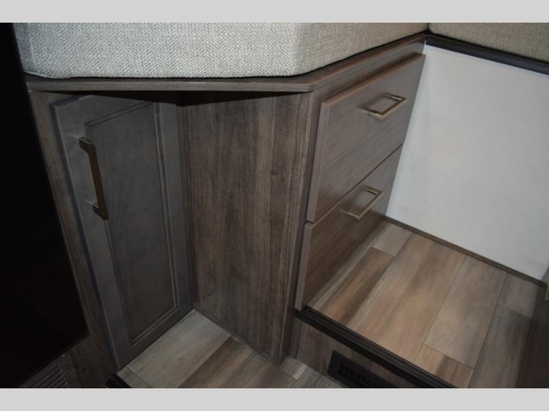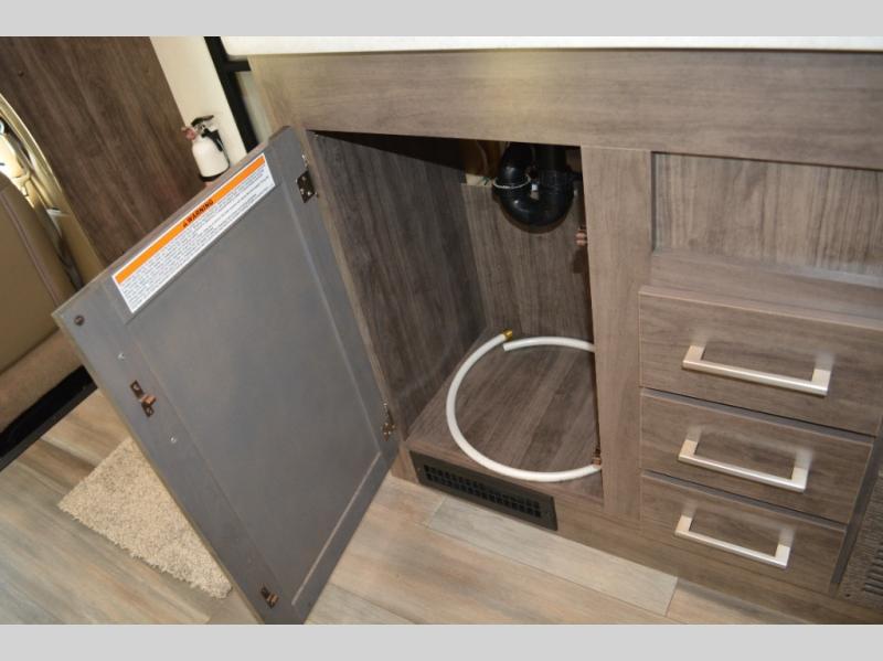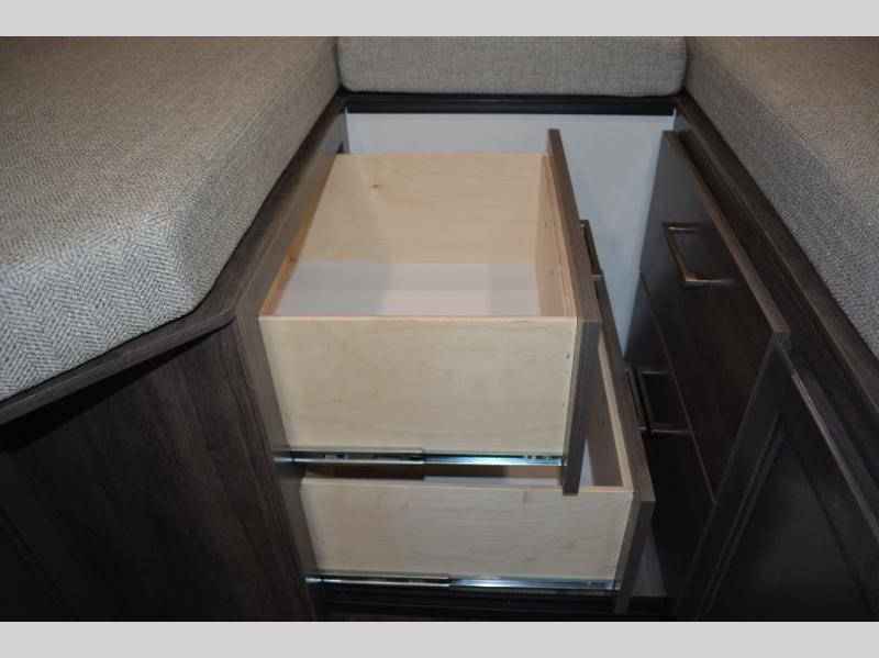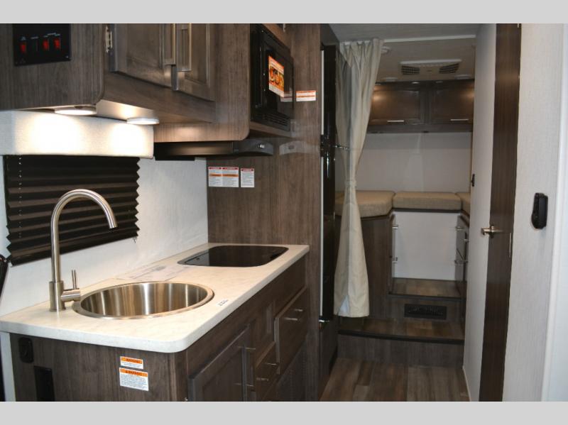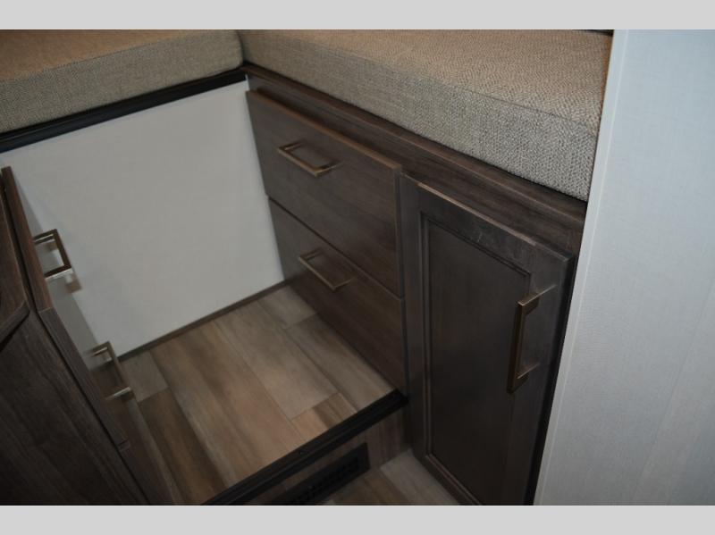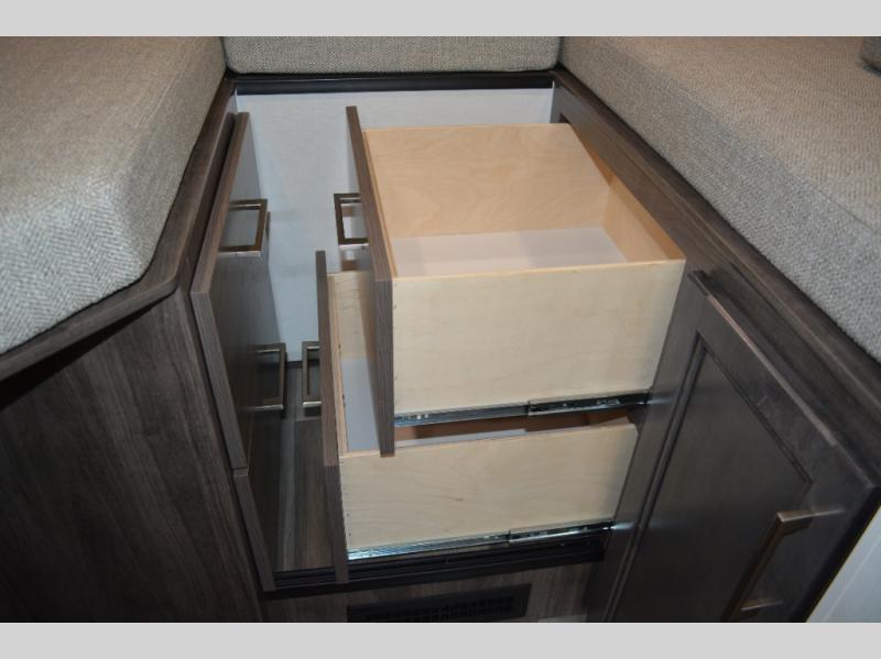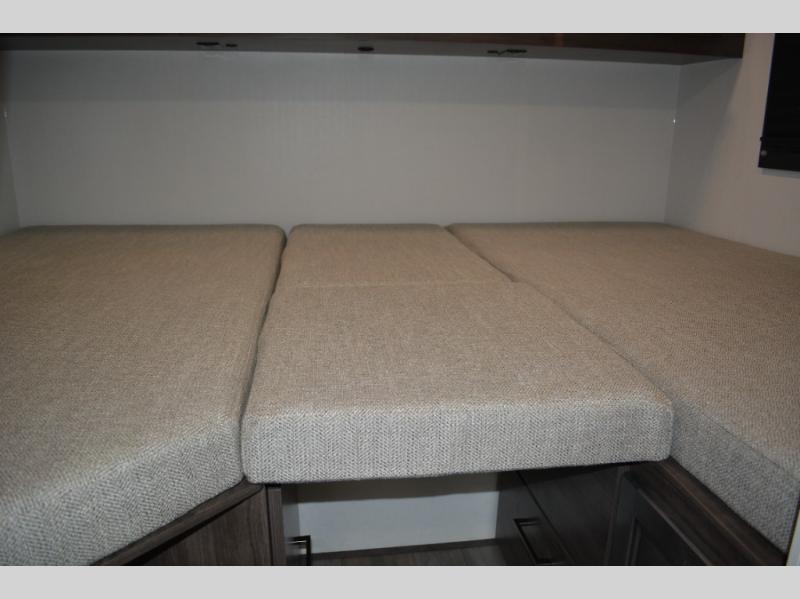Each journey in this coach will be a journey to remember! Once you arrive at the campground, you can make lunch on the two burner cooktop with a flush cover, or use the convection microwave oven. There is also a 12V refrigerator and overhead cabinets for food, spices, and more. A 48" bench with a removable table will provide a place to dine at, and the mid-coach full bath means you won't have to use the camp's facilities. You'll find two twin beds that convert to a king-size bed in the back, meaning you'll be able to rest in comfort!