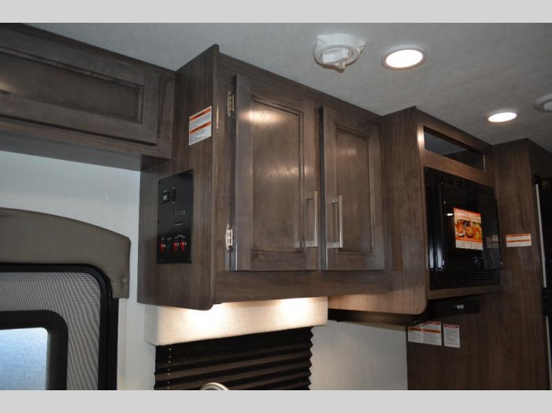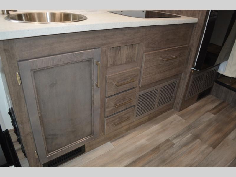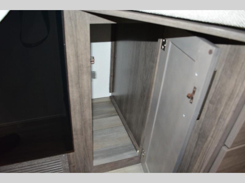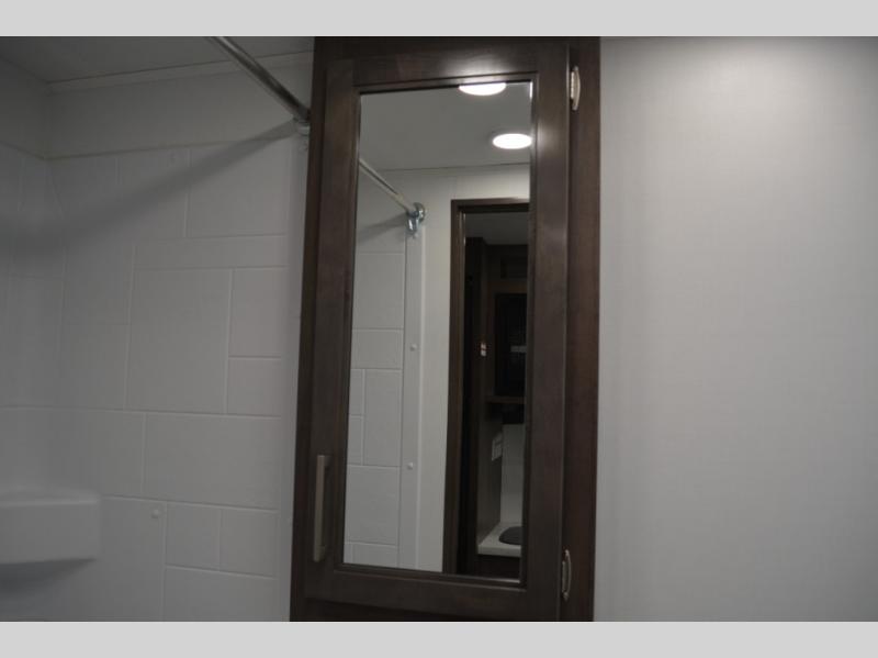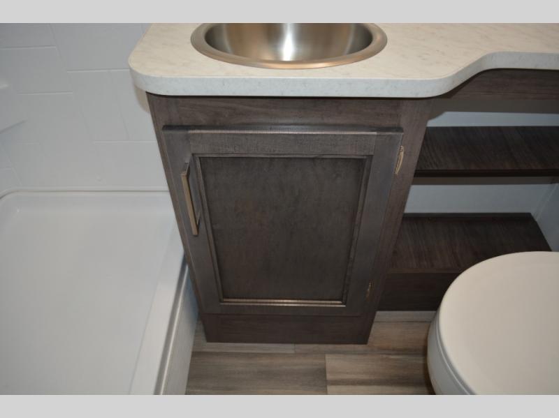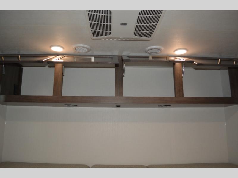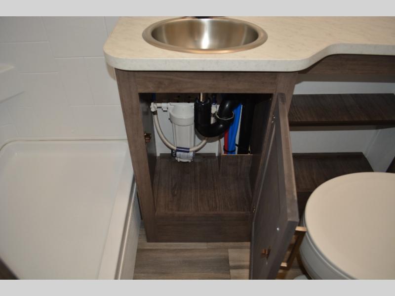 Each journey in this coach will be a journey to remember! Once you arrive at the campground, you can make lunch on the two burner cooktop with a flush cover, or use the convection microwave oven. There is also a 12V refrigerator and overhead cabinets for food, spices, and more. A 48" bench with a removable table will provide a place to dine at, and the mid-coach full bath means you won't have to use the camp's facilities. You'll find two twin beds that convert to a king-size bed in the back, meaning you'll be able to rest in comfort!