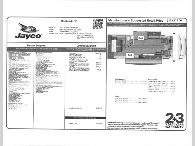 New 2026 Jayco Redhawk SE 29KF Motor Home Class C