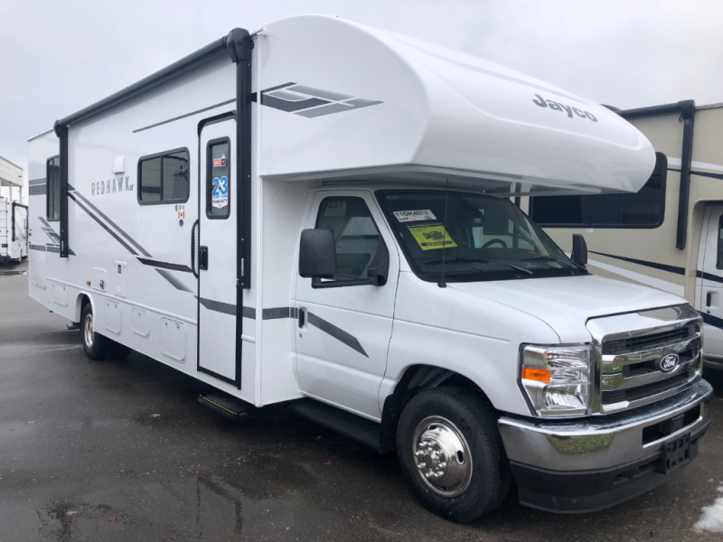 Experience easy living in any one of these Jayco Redhawk SE Class C gas motorhomes! They are built with a Stronghold VBL lamination which is the lightest and strongest construction in the RV industry. The one-piece seamless front cap which helps to resist wear and tear, the Ford E-350 chassis, and the 7.3L V8 325 HP engine reflects the strength and dependable performance built into every unit. The mandatory Customer Value package includes an electric patio awning to protect you rain or shine, an LED HD Smart TV, and a backup camera to make parking and maneuvering easier. You will also love your options that include automatic hydraulic leveling jacks and an optional 200W solar panel with a dual controller and second house battery for off-grid capabilities!