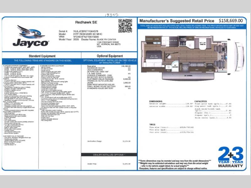 Jayco Redhawk SE Class C gas motorhome 31FF highlights: