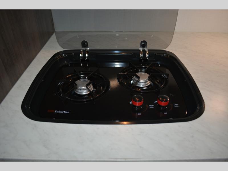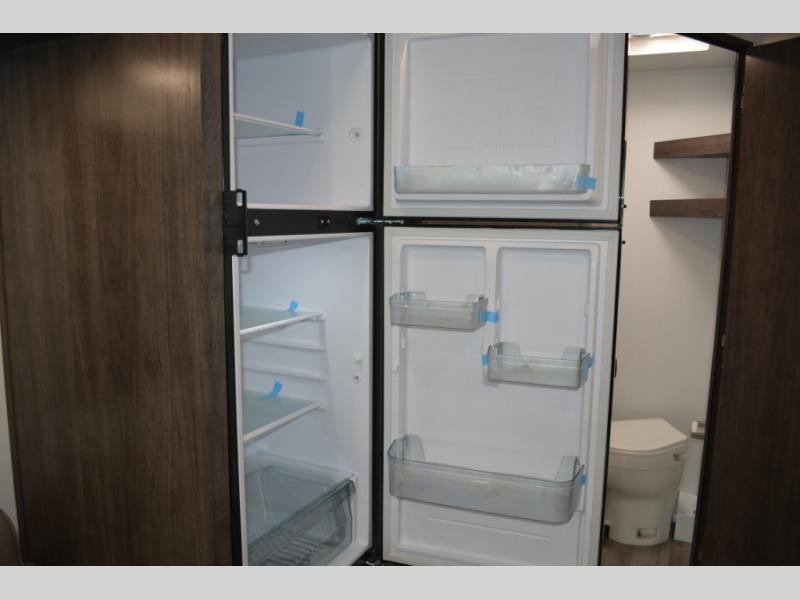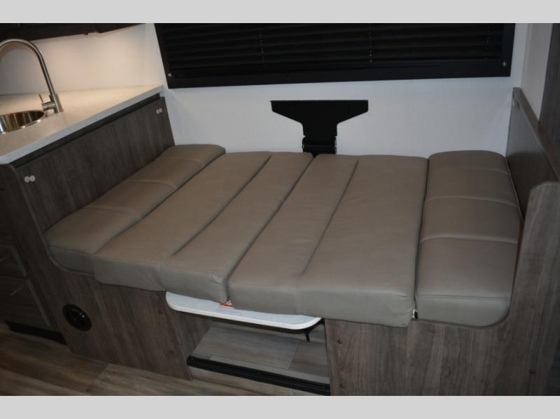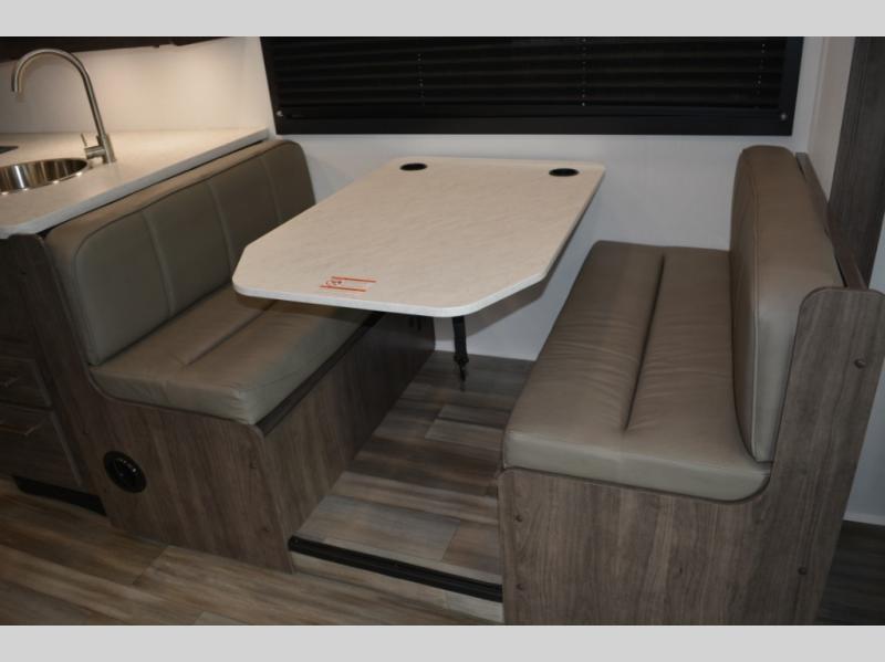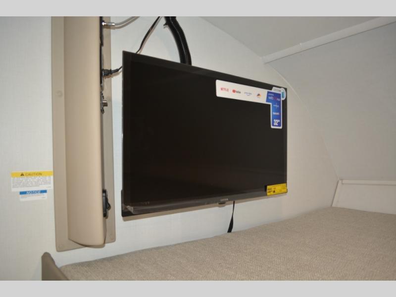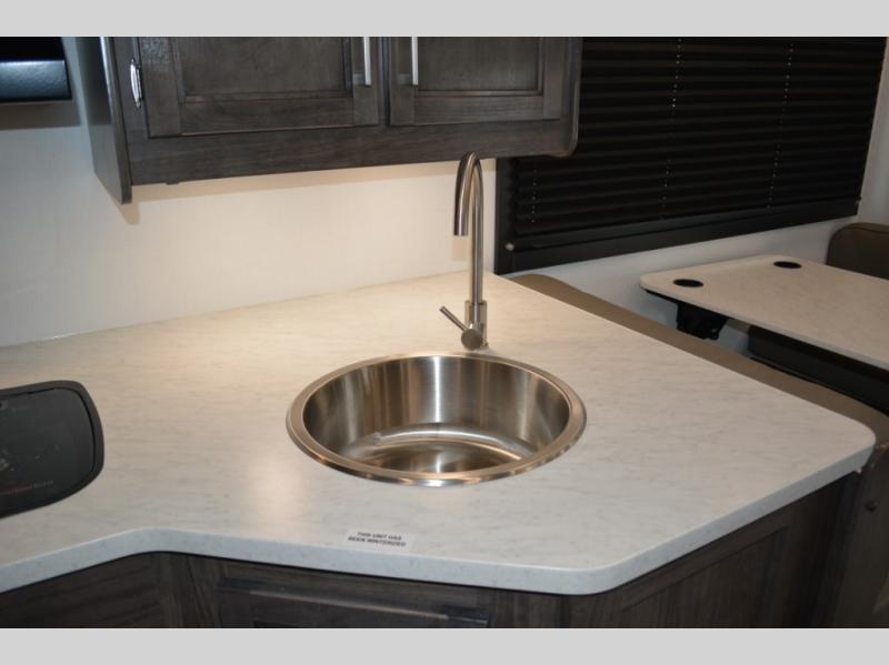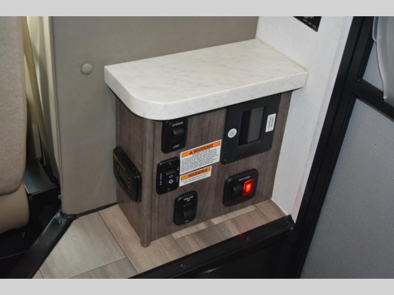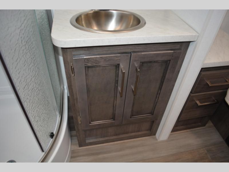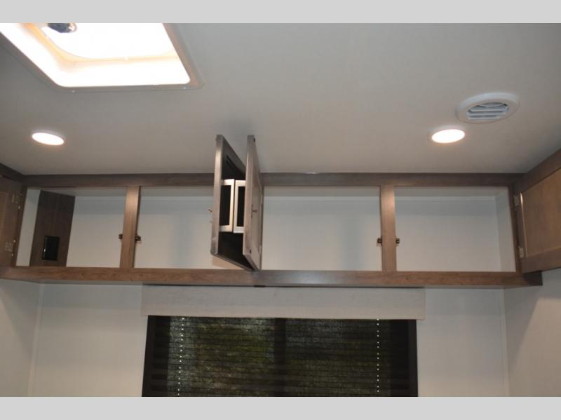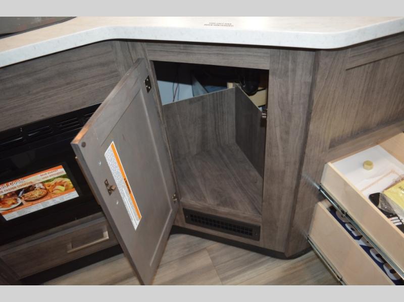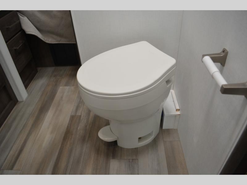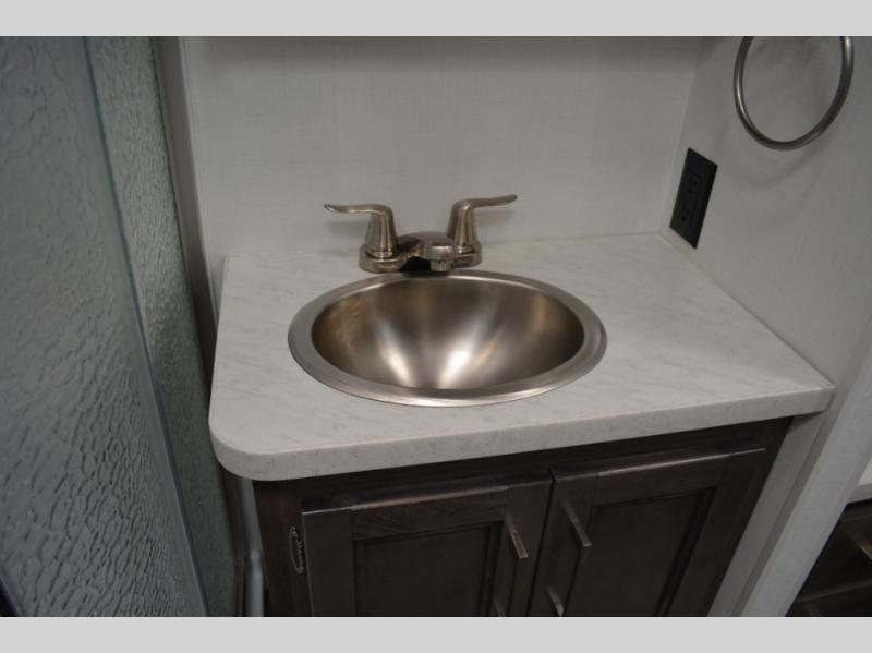 This coach will be perfect if you enjoy traveling with a larger group. Between the cab-over bunk and bunk beds, plus the RV queen bed and living area furniture, you can comfortably sleep eight! You can prepare meals for your crew on the two burner cooktop or in the convection microwave, and there is a 10 cu. ft. 12V refrigerator plus a pantry for food storage. The bunk beds are across from the dual entry bath for easy nighttime use, and you'll appreciate the rear private bedroom all to yourselves. Along with the RV queen bed, there is a wardrobe and drawers to keep shoes, clothes and more stored away!