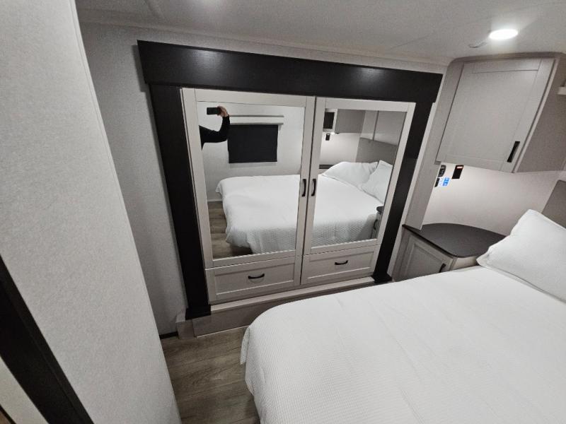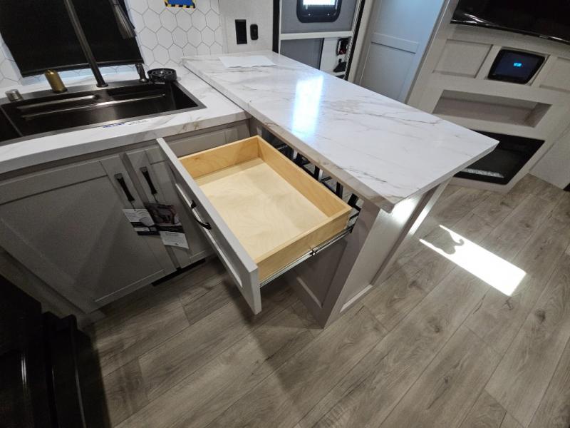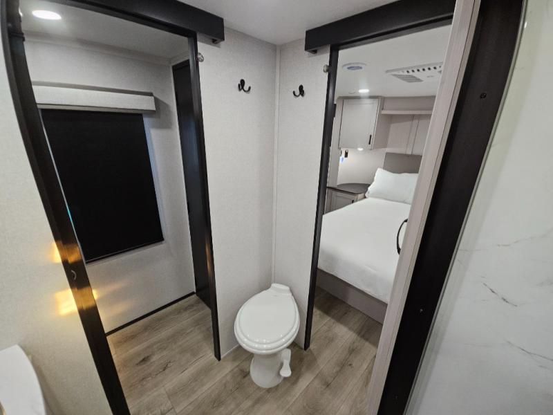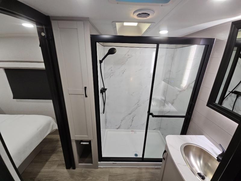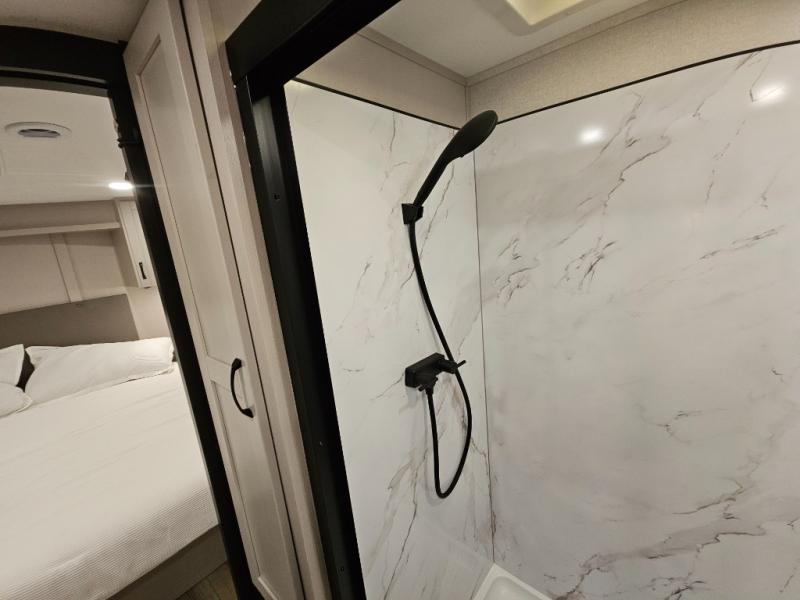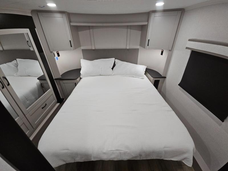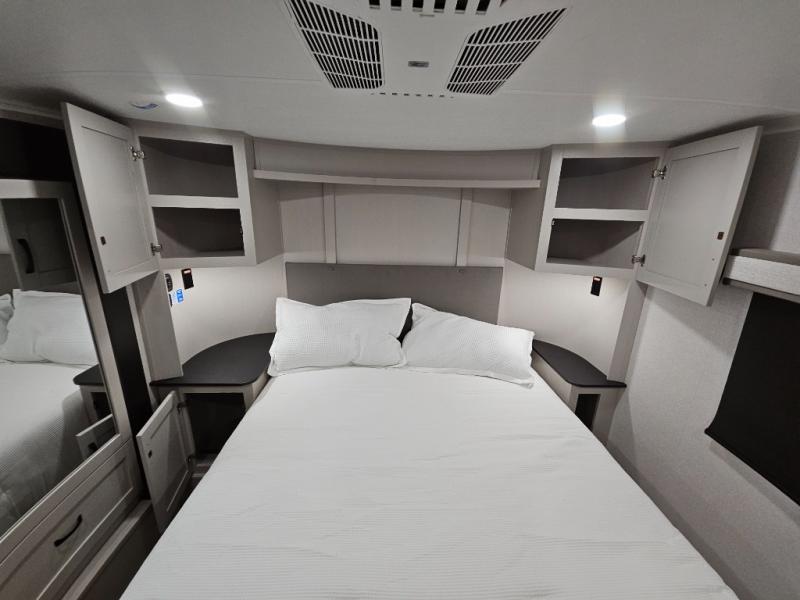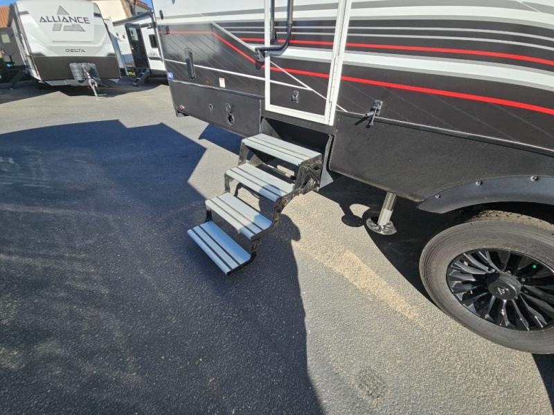 One look at the Seismic toy haulers by Jayco, and you'll never go back! Each model features a custom automotive-grade vinyl exterior graphics package, a painted fiberglass front cap with built-in LED lighting, and 102" wide-body structural steel I-beam construction. You'll find the pass-through storage with Slam-Latch baggage doors will make unpacking easier than ever, and the rear ramp door/patio with anti-slip, non-skid flooring will allow you to unload your toys with no trouble at all. These toy haulers feature a three seasons garage wall/doors, a 30 gallon fuel tank with a timer, and exterior marine-grade speakers to keep the party going. The Climate Shield zero degree tested weather protection includes a 35,000 BTU furnace, PEX plumbing, and a fully enclosed and heated underbelly so you can enjoy your adventures year around. And we haven't even touched on the interior luxuries you'll find, like solid hardwood cabinet doors, residential vinyl flooring made in the USA, night shades, and more!