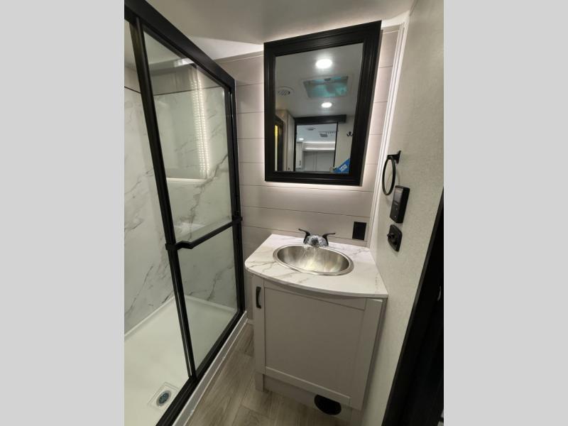 One look at the Seismic toy haulers by Jayco, and you'll never go back! Each model features a custom automotive-grade vinyl exterior graphics package, a painted fiberglass front cap with built-in LED lighting, and 102" wide-body structural steel I-beam construction. You'll find the pass-through storage with Slam-Latch baggage doors will make unpacking easier than ever, and the rear ramp door/patio with anti-slip, non-skid flooring will allow you to unload your toys with no trouble at all. These toy haulers feature a three seasons garage wall/doors, a 30 gallon fuel tank with a timer, and exterior marine-grade speakers to keep the party going. The Climate Shield zero degree tested weather protection includes a 35,000 BTU furnace, PEX plumbing, and a fully enclosed and heated underbelly so you can enjoy your adventures year around. And we haven't even touched on the interior luxuries you'll find, like solid hardwood cabinet doors, residential vinyl flooring made in the USA, night shades, and more!