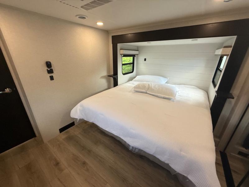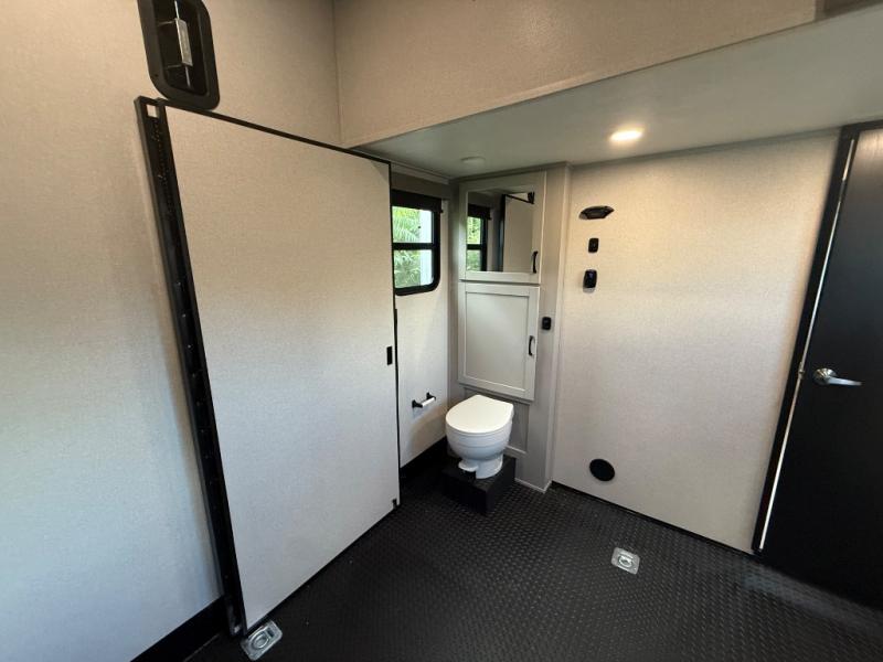 One look at the Seismic toy haulers by Jayco, and you'll never go back! Each model features a custom automotive-grade vinyl exterior graphics package, a painted fiberglass front cap with built-in LED lighting, and 102" wide-body structural steel I-beam construction. You'll find the pass-through storage with Slam-Latch baggage doors will make unpacking easier than ever, and the rear ramp door/patio with anti-slip, non-skid flooring will allow you to unload your toys with no trouble at all. These toy haulers feature a three seasons garage wall/doors, a 30 gallon fuel tank with a timer, and exterior marine-grade speakers to keep the party going. The Climate Shield zero degree tested weather protection includes a 35,000 BTU furnace, PEX plumbing, and a fully enclosed and heated underbelly so you can enjoy your adventures year around. And we haven't even touched on the interior luxuries you'll find, like solid hardwood cabinet doors, residential vinyl flooring made in the USA, night shades, and more!