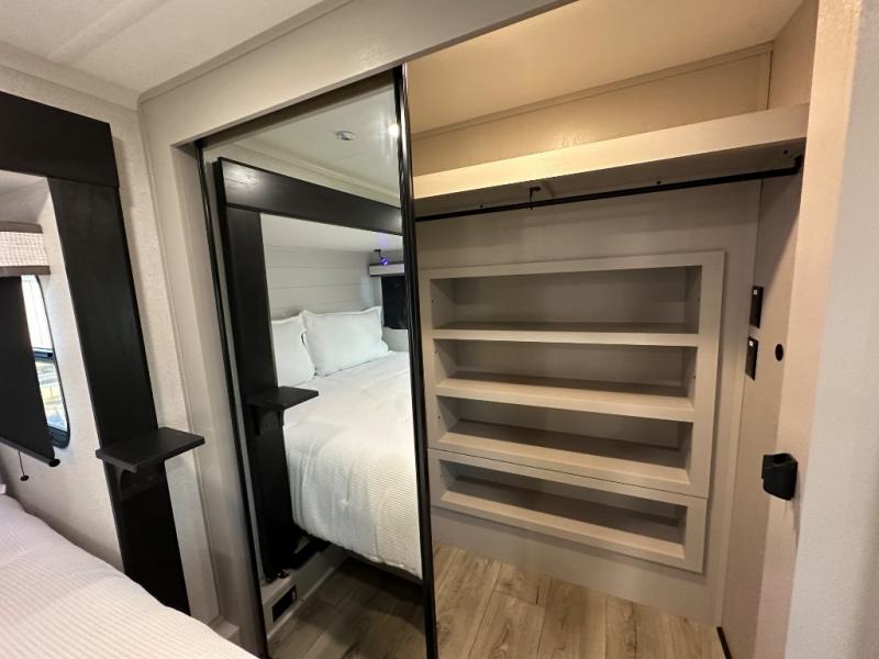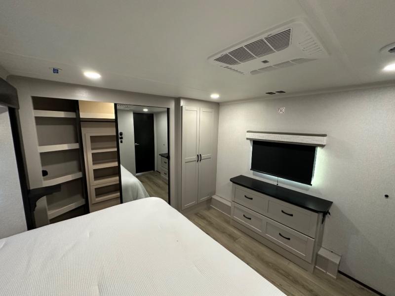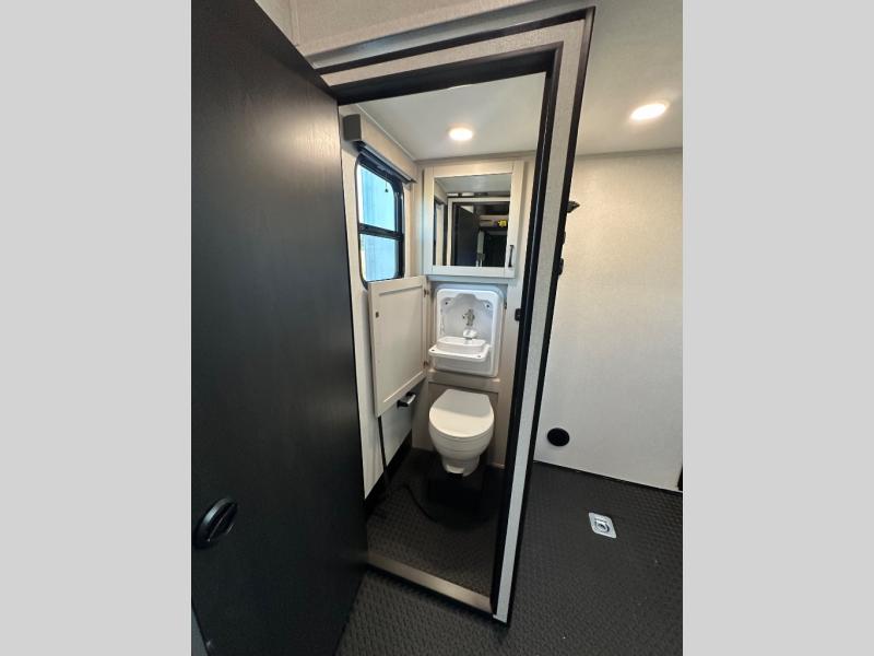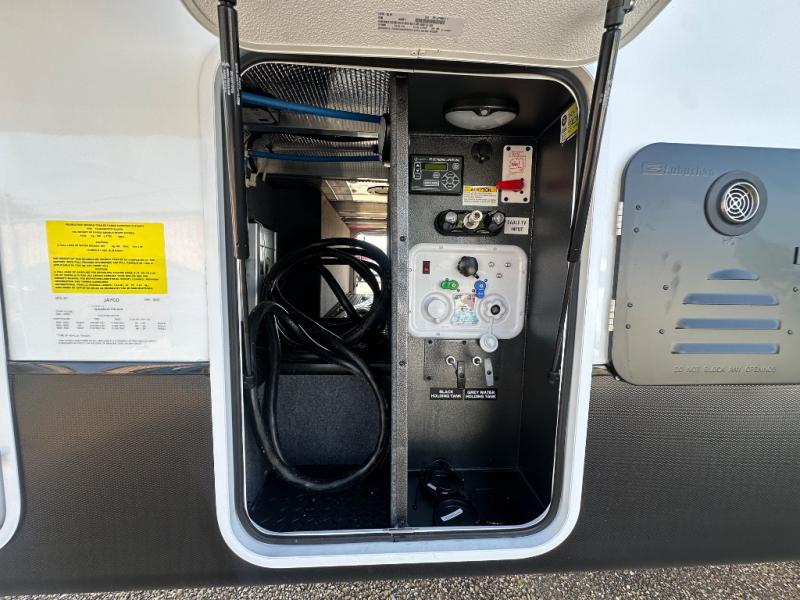 One look at the Seismic toy haulers by Jayco, and you'll never go back! Each model features a custom automotive-grade vinyl exterior graphics package, a painted fiberglass front cap with built-in LED lighting, and 102" wide-body structural steel I-beam construction. You'll find the pass-through storage with Slam-Latch baggage doors will make unpacking easier than ever, and the rear ramp door/patio with anti-slip, non-skid flooring will allow you to unload your toys with no trouble at all. These toy haulers feature a three seasons garage wall/doors, a 30 gallon fuel tank with a timer, and exterior marine-grade speakers to keep the party going. The Climate Shield zero degree tested weather protection includes a 35,000 BTU furnace, PEX plumbing, and a fully enclosed and heated underbelly so you can enjoy your adventures year around. And we haven't even touched on the interior luxuries you'll find, like solid hardwood cabinet doors, residential vinyl flooring made in the USA, night shades, and more!