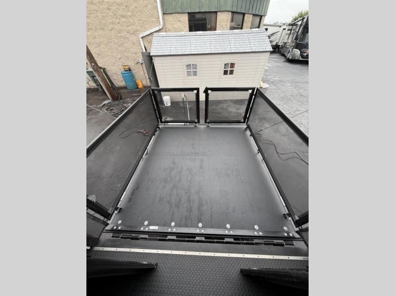 Take your outdoor adventures up a notch with this Seismic toy hauler. You can take the whole gang along for some fun with triple slides and dual entry for easy access going in and out. Your friends will sleep comfortably on the convertible sofas with overhead queen bed above in the 14' cargo garage space. There is also a storage space/loft above for their things and additional sleeping if needed. Inside, a full bath can be shared by all to get cleaned up each day, and all can gather inside in the spacious living area featuring dual opposing slides. Theater seating and an L-shaped tri-fold sofa create plenty of space for lounging. There is also a dining table for four inside and the second table in the garage area allows for more seating during meals inside when the weather isn't that nice. Two side awnings provide protection from the elements, along with a rear awning, and the rear ramp party deck with steps create even more outdoor living space to enjoy!
