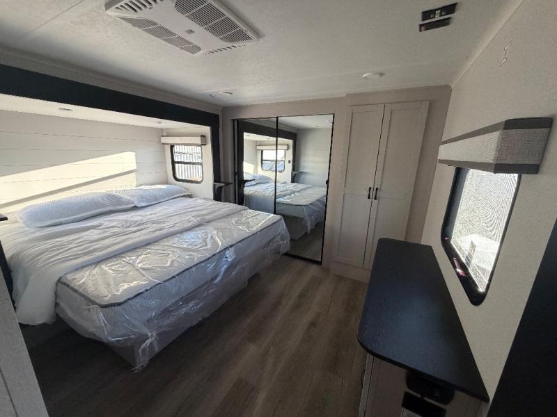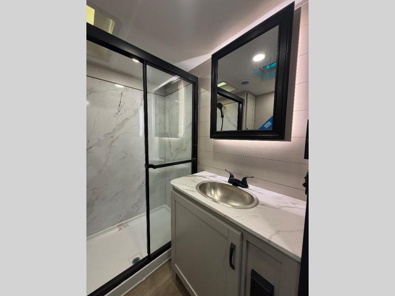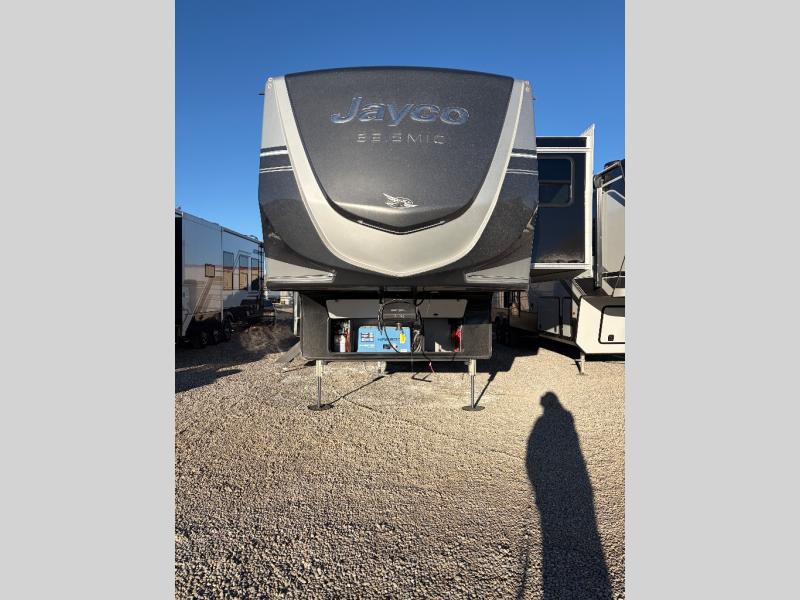 One look at the Seismic toy haulers by Jayco, and you'll never go back! Each model features a custom automotive-grade vinyl exterior graphics package, a painted fiberglass front cap with built-in LED lighting, and 102" wide-body structural steel I-beam construction. You'll find the pass-through storage with Slam-Latch baggage doors will make unpacking easier than ever, and the rear ramp door/patio with anti-slip, non-skid flooring will allow you to unload your toys with no trouble at all. These toy haulers feature a three seasons garage wall/doors, a 30 gallon fuel tank with a timer, and exterior marine-grade speakers to keep the party going. The Climate Shield zero degree tested weather protection includes a 35,000 BTU furnace, PEX plumbing, and a fully enclosed and heated underbelly so you can enjoy your adventures year around. And we haven't even touched on the interior luxuries you'll find, like solid hardwood cabinet doors, residential vinyl flooring made in the USA, night shades, and more!