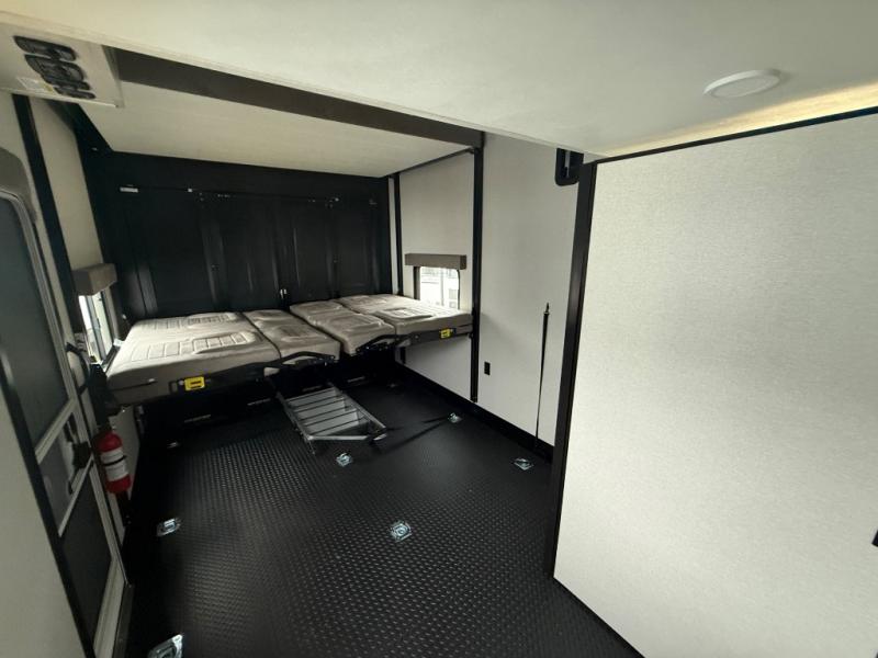 One look at the Seismic toy haulers by Jayco, and you'll never go back! Each model features a custom automotive-grade vinyl exterior graphics package, a painted fiberglass front cap with built-in LED lighting, and 102" wide-body structural steel I-beam construction. You'll find the pass-through storage with Slam-Latch baggage doors will make unpacking easier than ever, and the rear ramp door/patio with anti-slip, non-skid flooring will allow you to unload your toys with no trouble at all. These toy haulers feature a three seasons garage wall/doors, a 30 gallon fuel tank with a timer, and exterior marine-grade speakers to keep the party going. The Climate Shield zero degree tested weather protection includes a 35,000 BTU furnace, PEX plumbing, and a fully enclosed and heated underbelly so you can enjoy your adventures year around. And we haven't even touched on the interior luxuries you'll find, like solid hardwood cabinet doors, residential vinyl flooring made in the USA, night shades, and more!