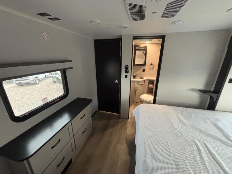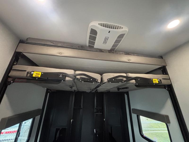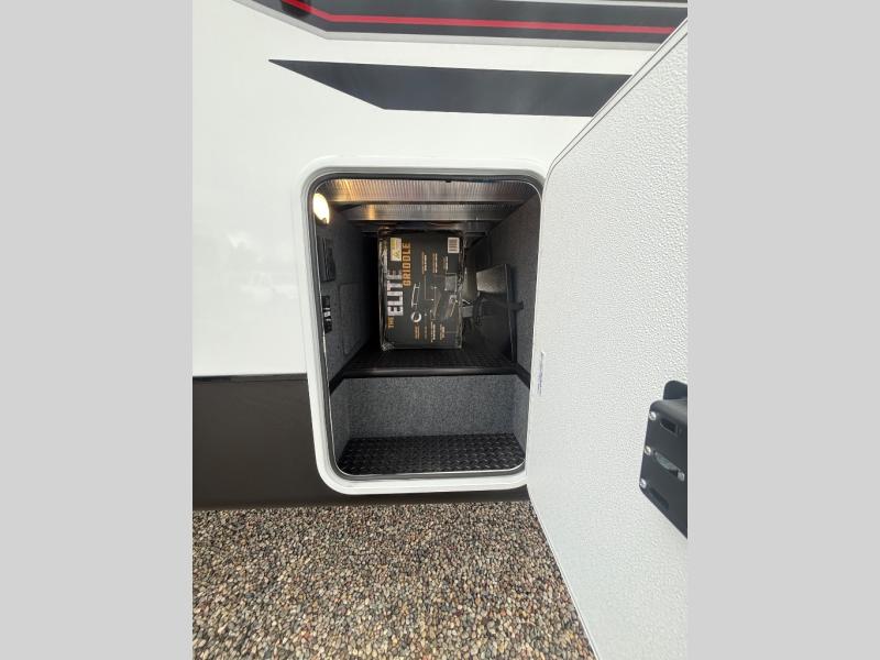 One look at the Seismic toy haulers by Jayco, and you'll never go back! Each model features a custom automotive-grade vinyl exterior graphics package, a painted fiberglass front cap with built-in LED lighting, and 102" wide-body structural steel I-beam construction. You'll find the pass-through storage with Slam-Latch baggage doors will make unpacking easier than ever, and the rear ramp door/patio with anti-slip, non-skid flooring will allow you to unload your toys with no trouble at all. These toy haulers feature a three seasons garage wall/doors, a 30 gallon fuel tank with a timer, and exterior marine-grade speakers to keep the party going. The Climate Shield zero degree tested weather protection includes a 35,000 BTU furnace, PEX plumbing, and a fully enclosed and heated underbelly so you can enjoy your adventures year around. And we haven't even touched on the interior luxuries you'll find, like solid hardwood cabinet doors, residential vinyl flooring made in the USA, night shades, and more!