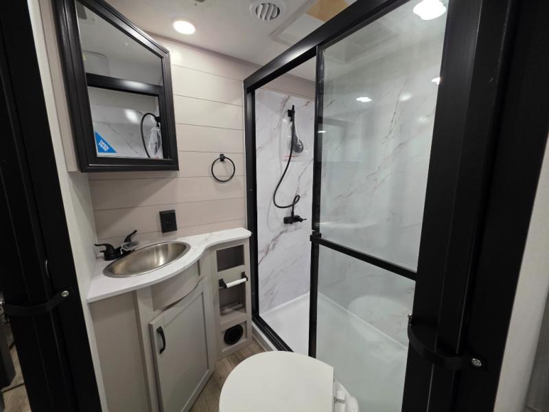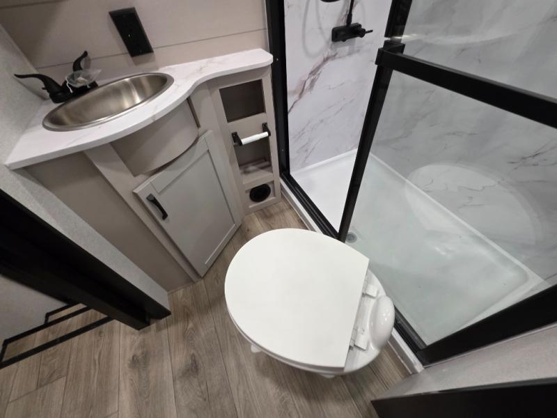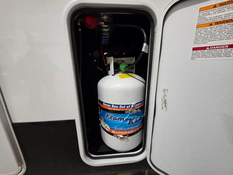 One look at the Seismic toy hauler fifth wheels by Jayco, and you'll never go back! Each model features a custom automotive-grade vinyl exterior graphics package, a painted fiberglass front cap with built-in LED lighting, and 102" wide-body structural steel I-beam construction. You'll find the pass-through storage with Slam-Latch baggage doors will make unpacking easier than ever, and the rear ramp door/patio with anti-slip, non-skid flooring will allow you to unload your toys with no trouble at all. These toy haulers feature a three-season garage wall/doors, a 30-gallon fuel tank with a timer, and exterior marine-grade speakers to keep the party going. The Climate Shield zero degree tested weather protection includes a 35,000 BTU furnace and a fully enclosed and heated underbelly for better protection against the elements. And we haven't even touched on the interior luxuries you'll find, like solid hardwood cabinet doors, residential vinyl flooring made in the USA, night roller shades, and more!
