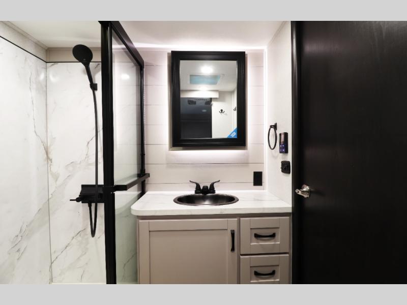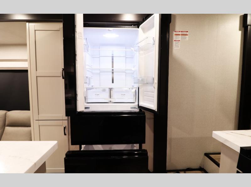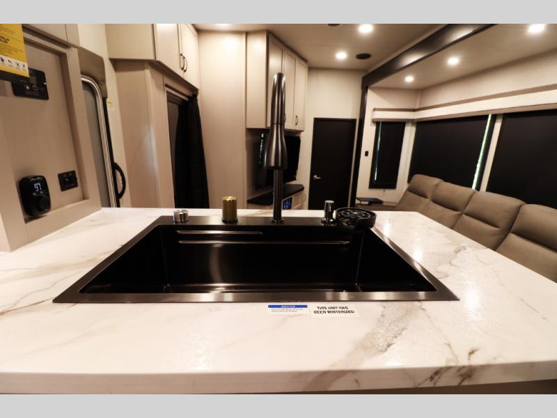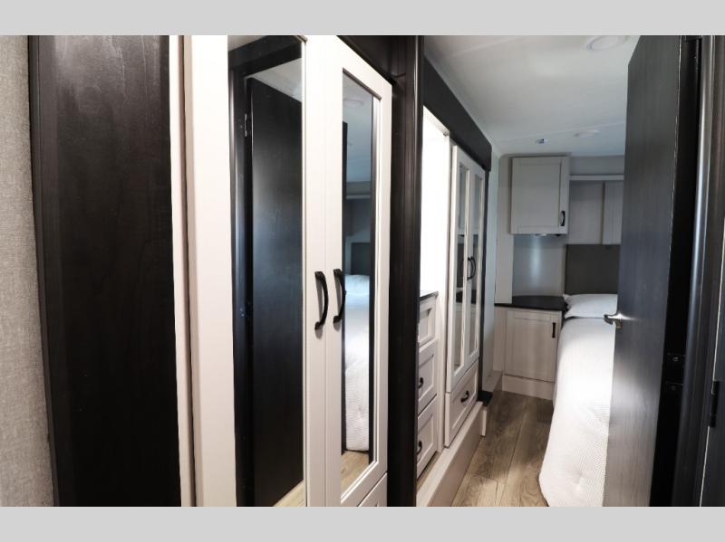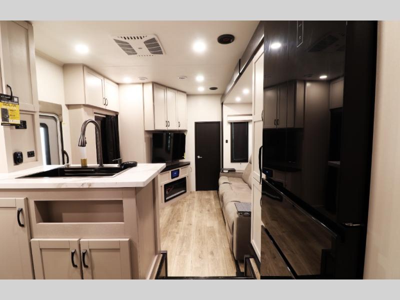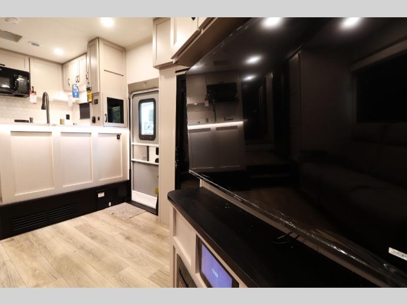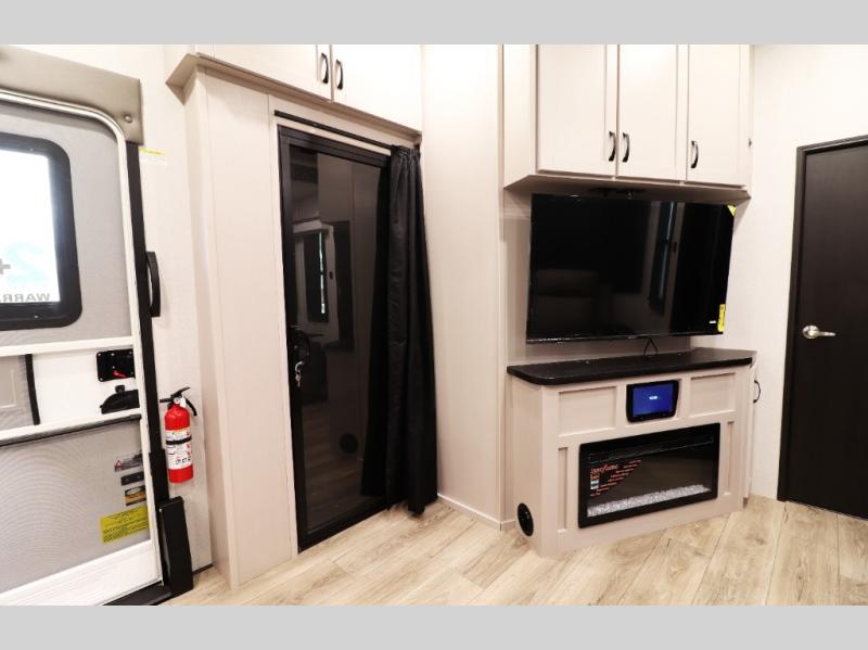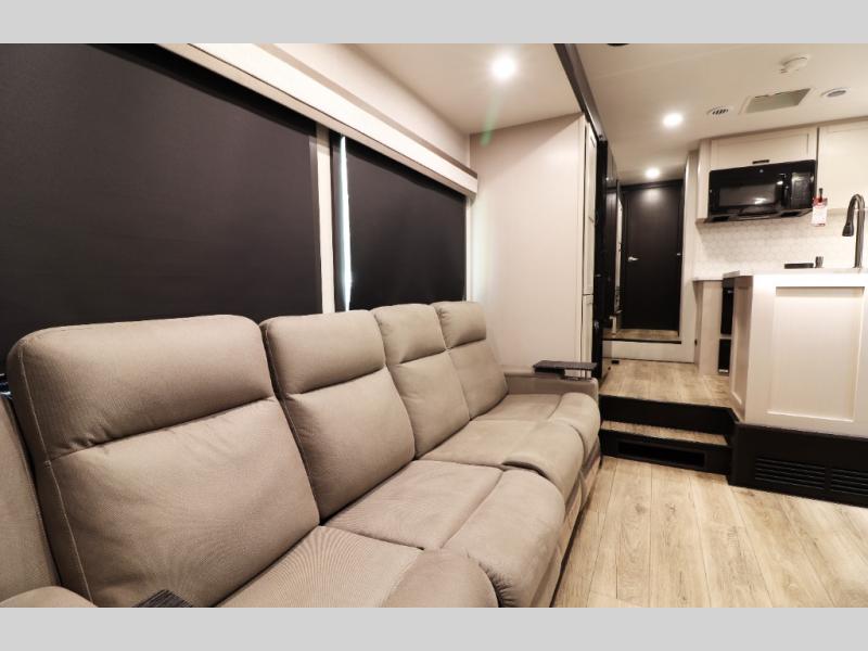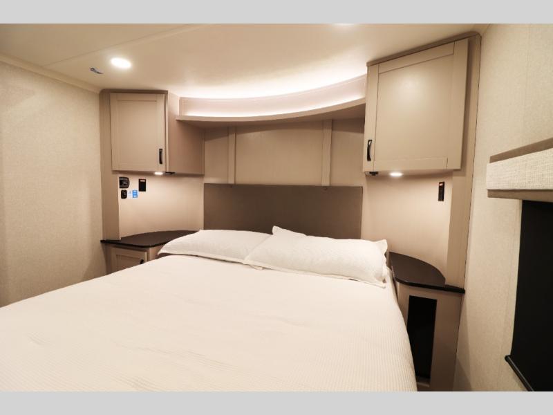 Pre-wired for washer/dryer, central command monitoring station, carbon monoxide/LP detectors, LED interior lighting throughout, USB/12V charging stations and residential flooring—perfect blend of tech and comfort.