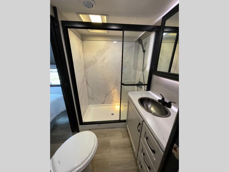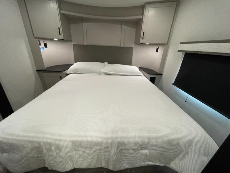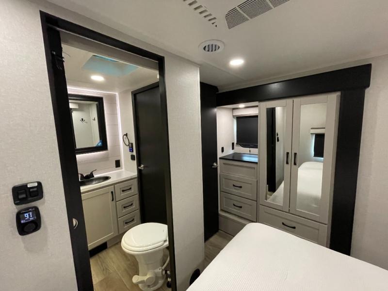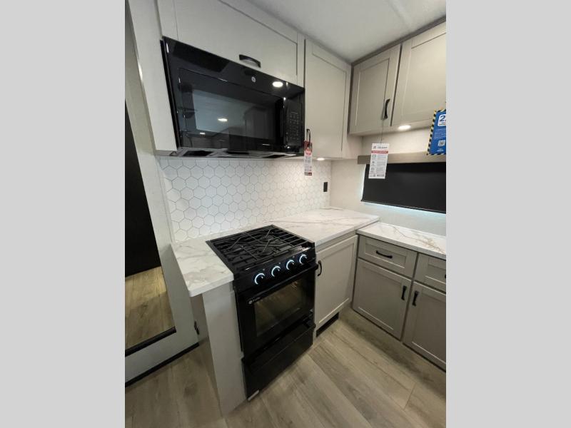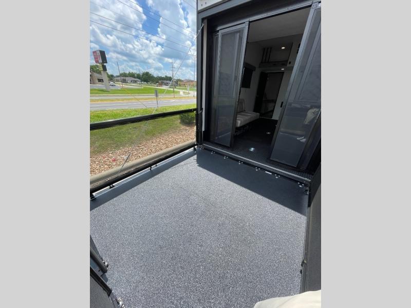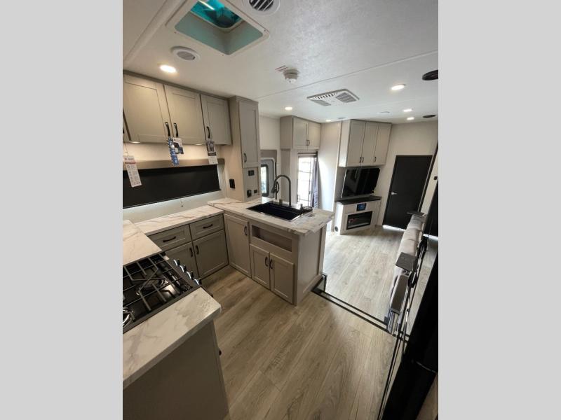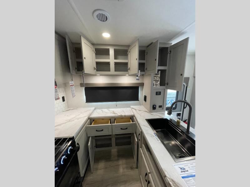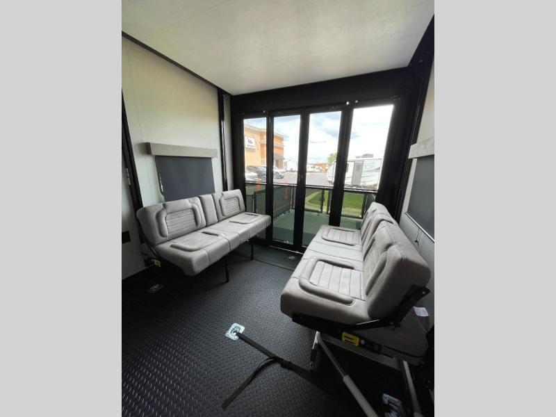One look at the Seismic toy haulers by Jayco, and you'll never go back! Each model features a custom automotive-grade vinyl exterior graphics package, a painted fiberglass front cap with built-in LED lighting, and 102" wide-body structural steel I-beam construction. You'll find the pass-through storage with Slam-Latch baggage doors will make unpacking easier than ever, and the rear ramp door/patio with anti-slip, non-skid flooring will allow you to unload your toys with no trouble at all. These toy haulers feature a three seasons garage wall/doors, a 30 gallon fuel tank with a timer, and exterior marine-grade speakers to keep the party going. The Climate Shield zero degree tested weather protection includes a 35,000 BTU furnace, PEX plumbing, and a fully enclosed and heated underbelly so you can enjoy your adventures year around. And we haven't even touched on the interior luxuries you'll find, like solid hardwood cabinet doors, residential vinyl flooring made in the USA, night shades, and more!