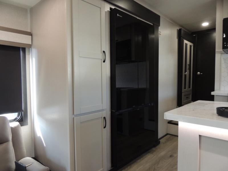 Get ready for outdoor adventures in this spacious toy hauler. Your guests will have the 13' separate garage area with its own half bath, a queen bed with rear convertible sofas, plus a loft for more sleeping or storage space. The main living area includes a large slide out for added space, and here you can relax on the sofa that sits across from the entertainment center with a 50" TV. The chef will love the U-shaped kitchen counter, 17 cu. ft. 12V refrigerator, and residential oven with a three burner cooktop. Up front, the private bedroom includes a king bed with a queen bed option, a slide out with dual wardrobes and a dresser, and quick access to the dual entry full bath! The exterior is just as accommodating with its 40" exterior TV, rear party deck and side patio party deck, and triple awnings for ample protection against the sun!