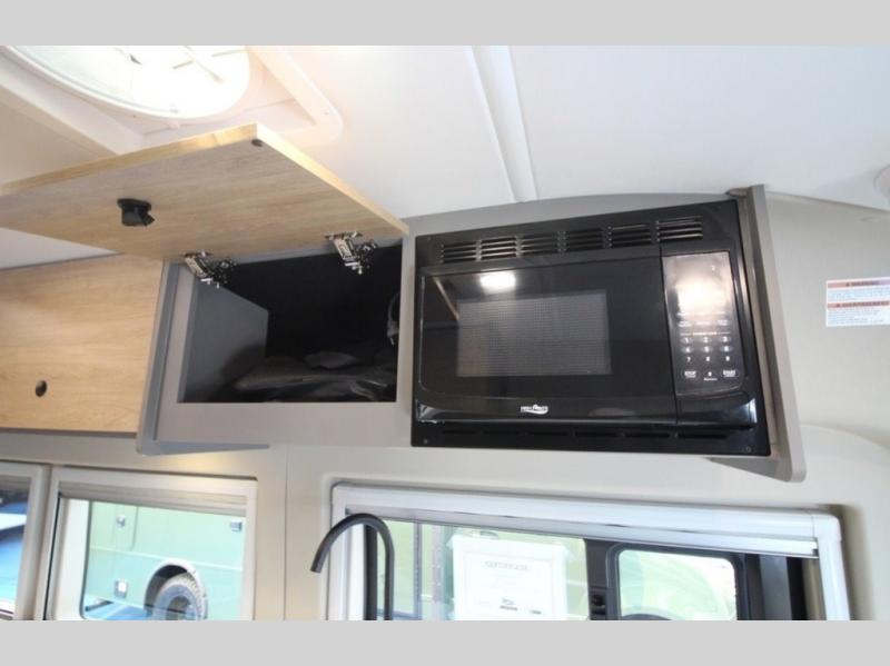 This coach will be perfect if you enjoy traveling with a friend or just need your own space at night. There are two 28" x 76" twin beds with overhead storage for your things, and the aisle will make it easier to get to the rear wet bath! The twin beds can also convert to one 61" x 76" bed if you'd rather have one big bed! A portable induction cooktop and microwave oven will let you make meals each day, and the 3.1 cu. ft. refrigerator will keep your cold items fresh. Up front, the swivel seats can be turned around when you park, and there is a flip-up seat desk behind the driver's seat for added convenience!