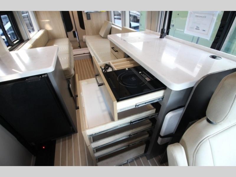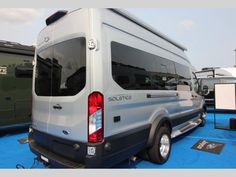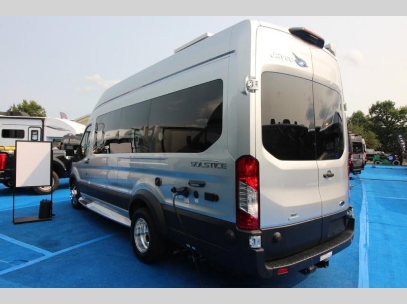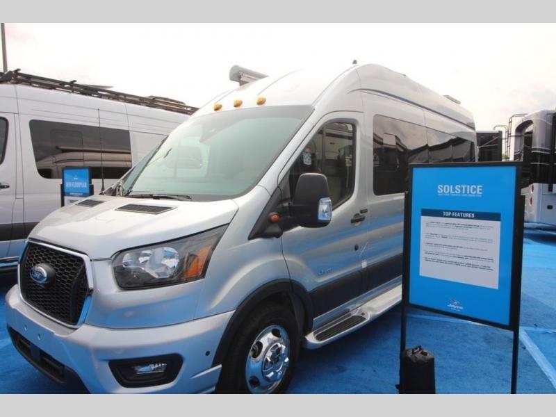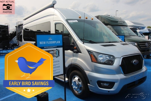 Travel in luxury with the Jayco Solstice Class B gas motorhome! The Ford Transit AWD 350HD chassis and 3.5L EcoBoost V6 310HP engine will take you to all of your favorite destinations. The rear-view camera with trailer hitch assist, Advance Trac with roll stability control, and SOS Post Crash Alert system will help keep you safe on every journey. Bring fresh air inside with the sliding vented windows and the side screen door with magnetic and zipper close offs. The mandatory Customer Value package includes JRide for a smooth ride, a Carefree® armless motion sensing patio awning with LED light strip, and a Truma Combi Eco Plus water heater and furnace.