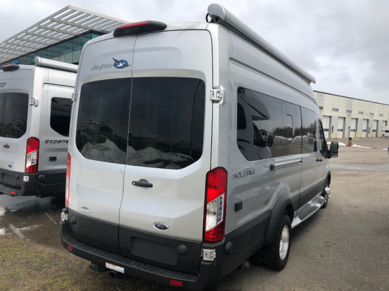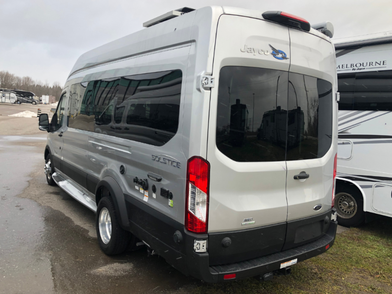 Travel in luxury with the Jayco Solstice Class B gas motorhome! The Ford Transit AWD 350HD chassis and 3.5L EcoBoost V6 310HP engine will take you to all of your favorite destinations. The rear-view camera with trailer hitch assist, Advance Trac with roll stability control, and SOS Post Crash Alert system will help keep you safe on every journey. Bring fresh air inside with the sliding vented windows and the side screen door with magnetic and zipper close offs. The mandatory Customer Value package includes JRide for a smooth ride, a Carefree® armless motion sensing patio awning with LED light strip, and a Truma Combi Eco Plus water heater and furnace.