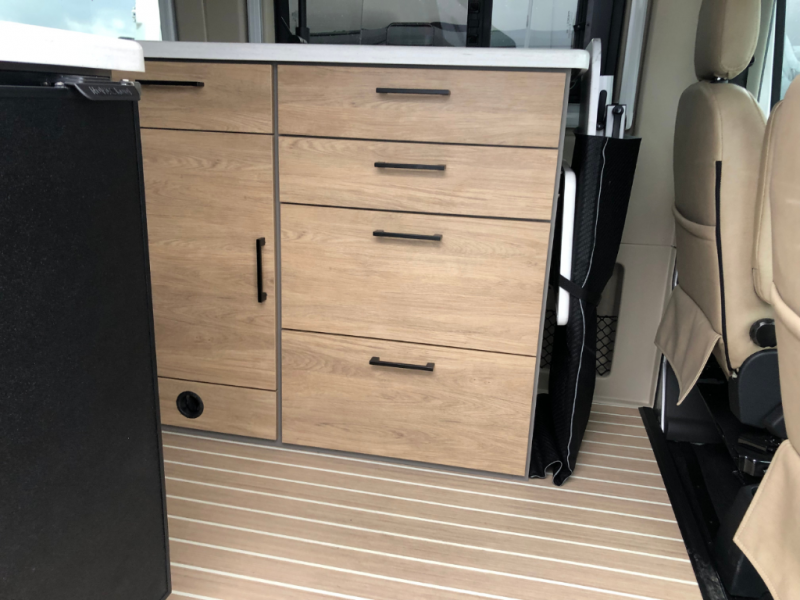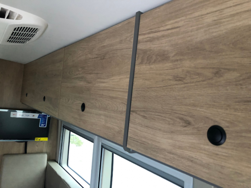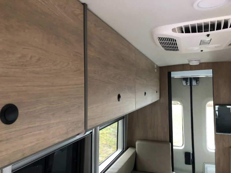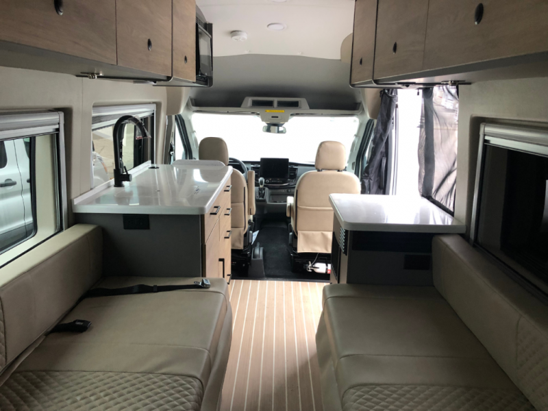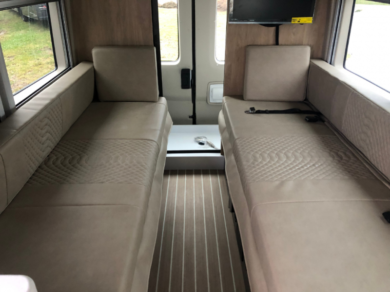 This coach will be perfect if you enjoy traveling with a friend or just need your own space at night. There are two 28" x 76" twin beds with overhead storage for your things, and the aisle will make it easier to get to the rear wet bath! The twin beds can also convert to one 61" x 76" bed if you'd rather have one big bed! A portable induction cooktop and microwave oven will let you make meals each day, and the 3.1 cu. ft. refrigerator will keep your cold items fresh. Up front, the swivel seats can be turned around when you park, and there is a flip-up seat desk behind the driver's seat for added convenience!