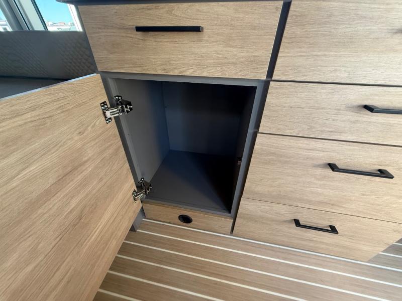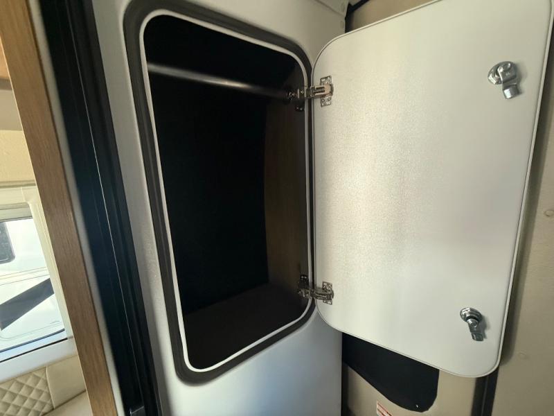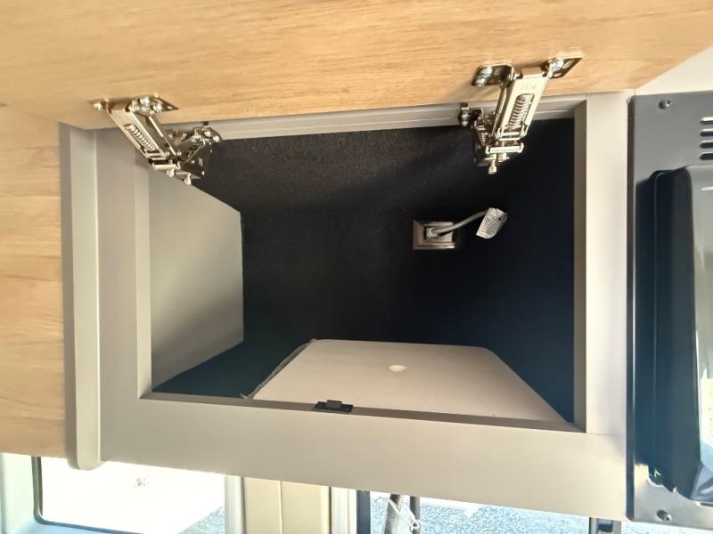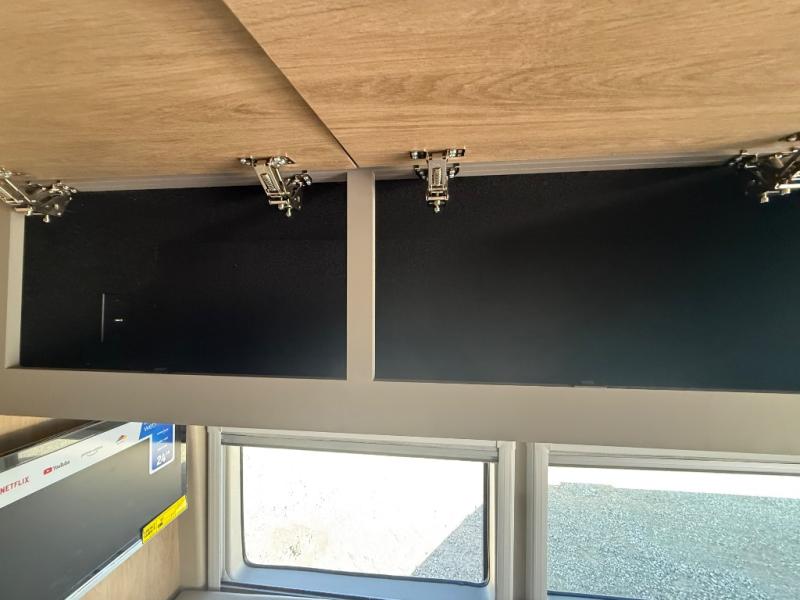 This coach will be perfect if you enjoy traveling with a friend or just need your own space at night. There are two 28" x 76" twin beds with overhead storage for your things, and the aisle will make it easier to get to the rear wet bath! The twin beds can also convert to one 61" x 76" bed if you'd rather have one big bed! A portable induction cooktop and microwave oven will let you make meals each day, and the 3.1 cu. ft. refrigerator will keep your cold items fresh. Up front, the swivel seats can be turned around when you park, and there is a flip-up seat desk behind the driver's seat for added convenience!