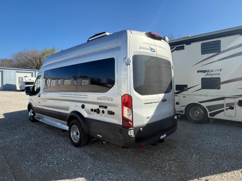 Travel in luxury with the Jayco Solstice Class B gas motorhome! The Ford Transit AWD 350HD chassis and 3.5L EcoBoost V6 310HP engine will take you to all of your favorite destinations. The rear-view camera with trailer hitch assist, Advance Trac with roll stability control, and SOS Post Crash Alert system will help keep you safe on every journey. Bring fresh air inside with the sliding vented windows and the side screen door with magnetic and zipper close offs. The mandatory Customer Value package includes JRide for a smooth ride, a Carefree® armless motion sensing patio awning with LED light strip, and a Truma Combi Eco Plus water heater and furnace.