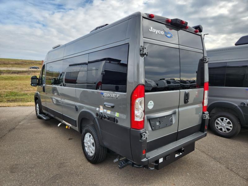 Head out on your greatest adventures with one of these Jayco Swift Class B gas motorhomes! Each model includes the JRide system with Hellwig helper springs and a premium heavy-duty suspension for smooth handling, and the Thule armless patio awning with LED lights will create an outdoor living space you are sure to love. Head inside to find pressed countertops, sliding vented windows, a soft-touch vinyl ceiling, plus many more comforts. The Uconnect 5 NAV infotainment center with Apple CarPlay® and Android Auto™ will also come in handy as you travel to your destination. An optional 200W roof-mounted solar panel can be added, along with the optional Li Package that features a lithium smart battery, Timberline hydronic heating system, a 3,000W inverter, and more power features!