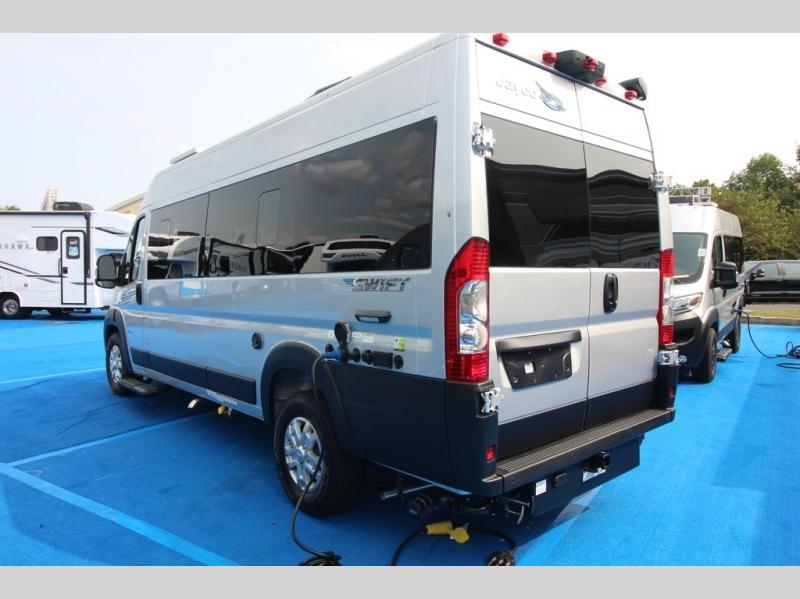 Head out on your greatest adventures with one of these Jayco Swift Class B gas motorhomes! Each model includes the JRide system with Hellwig helper springs and a premium heavy-duty suspension for smooth handling, and the Thule armless patio awning with LED lights will create an outdoor living space you are sure to love. Head inside to find pressed countertops, sliding vented windows, a soft-touch vinyl ceiling, plus many more comforts. The Uconnect 5 NAV infotainment center with Apple CarPlay® and Android Auto™ will also come in handy as you travel to your destination. An optional 200W roof-mounted solar panel can be added, along with the optional Li Package that features a lithium smart battery, Timberline hydronic heating system, a 3,000W inverter, and more power features!