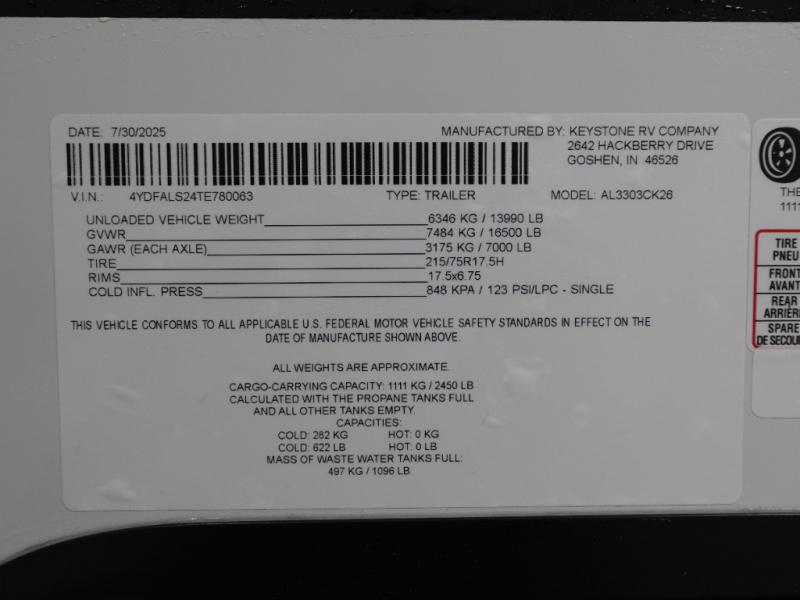 New 2026 Keystone RV Alpine 3303CK Fifth Wheel