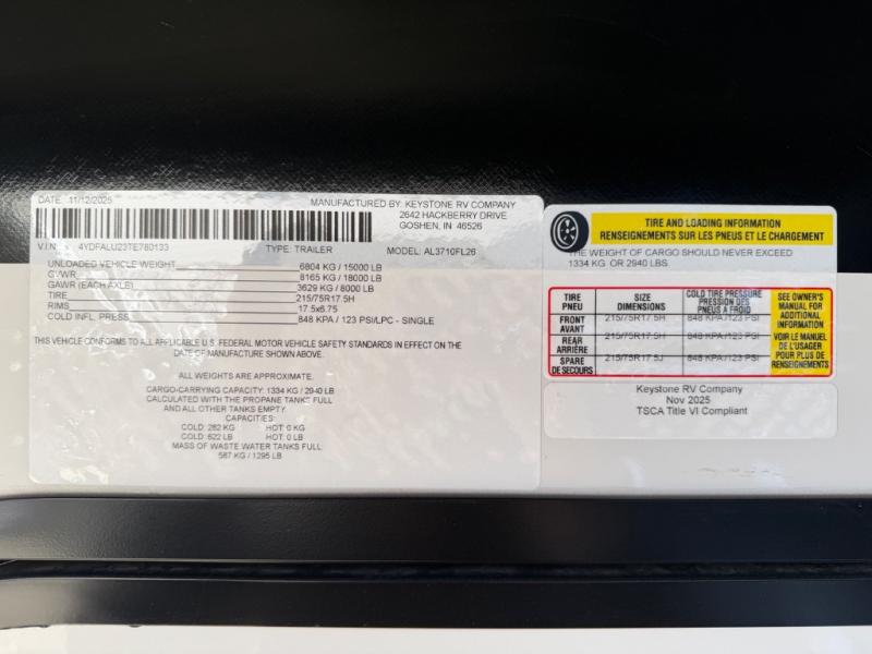 New 2026 Keystone RV Alpine 3710FL Fifth Wheel
