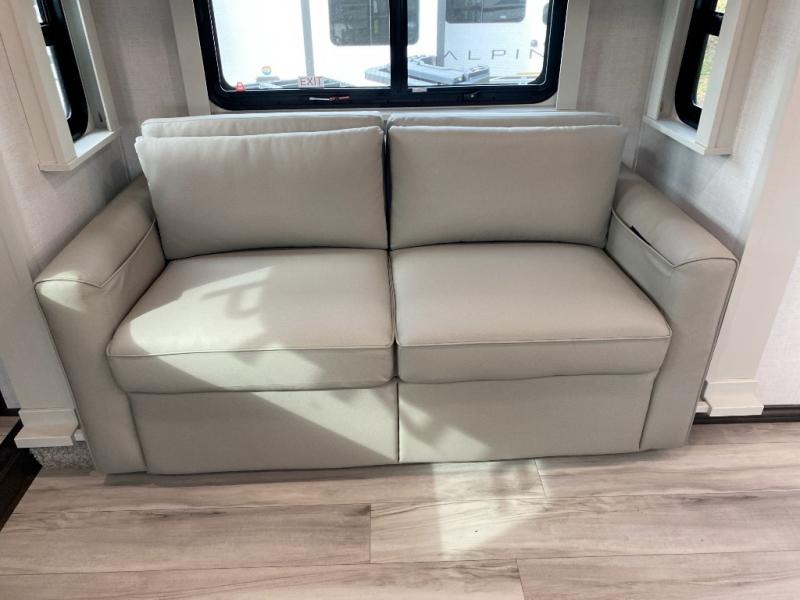 Luxury is not an option, it is a standard with each one of these Keystone RV Alpine fifth wheels! A 8' 4" wide body construction will create an open, residential feeling, and cutting-edge technology will provide a hassle-free camping experience. The Tru-Fit slide construction is more durable and minimizes motor structural stress, as well as resists leaking, and the Blade Pure airflow system provides residential comfort with its high-performance. Each fifth wheel includes designer flooring throughout, stunning solid wood cabinet doors, luxurious crown molding, and solid surface countertops in the kitchen. The exterior also includes an outside shower with hot and cold water, Lippert strut assisted SolidSteps, Hitch Vision with LED lighting, and many more conveniences!