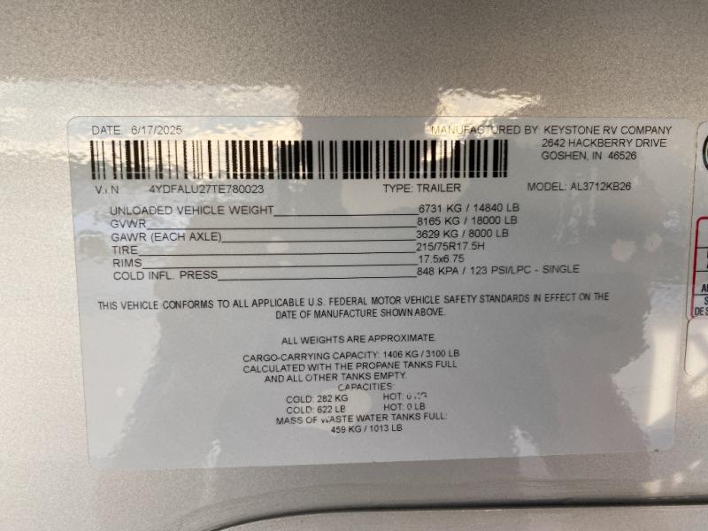 New 2026 Keystone RV Alpine 3712KB Fifth Wheel