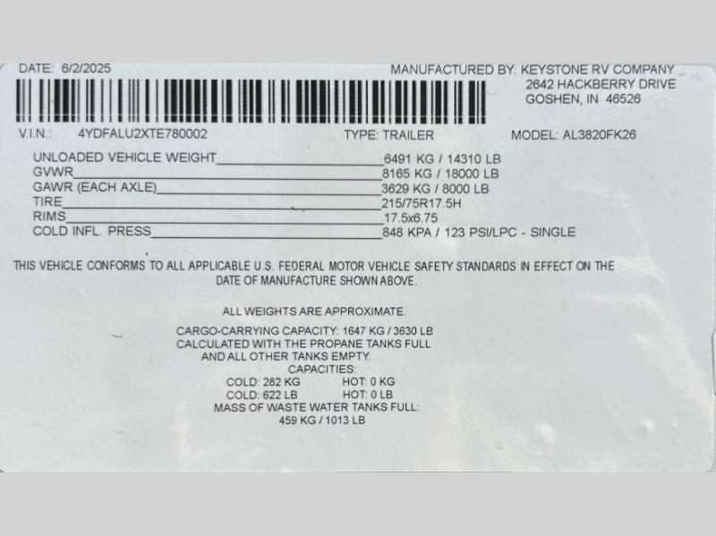 | VIN | 4YDFALU2XTE780002 |
