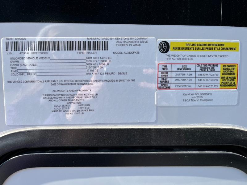 New 2026 Keystone RV Alpine 3820FK Fifth Wheel