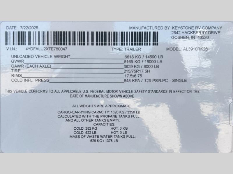 Keystone RV Alpine fifth wheel 3910RK highlights: