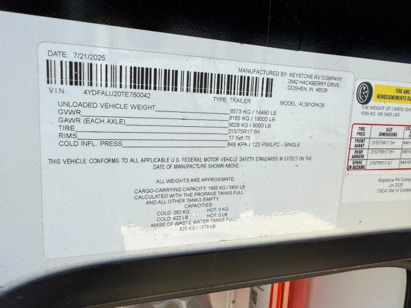 New 2026 Keystone RV Alpine 3910RK Fifth Wheel